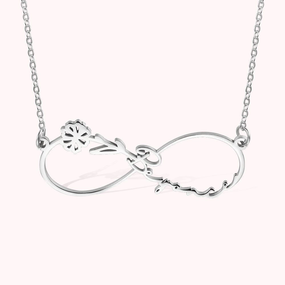 Dies ist eine individuelle Halskette, die mit Ihrem Namen und Ihrer Geburtsblume angepasst werden kann, um sie einzigartig zu machen. Es ist minimalistisch und modisch, um täglich zu tragen. Unsere Unendliche Namenskette ist die beste Möglichkeit für dich, zu zeigen, was das Wort "für immer" für dich bedeutet. An jeder Schleife des Unendlichkeitssymbols können Sie einen Namen und eine Geburtsblume anbringen. Dies ist die perfekte personalisierte Unendlichkeitskette zum Tragen.