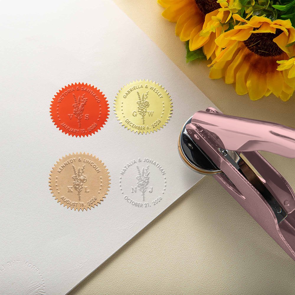Der personalisierte Buchpräger ist das perfekte Werkzeug, um Ihren Gegenständen einen Hauch von Einzigartigkeit zu verleihen. Sie können 2 Geburtsblumen auswählen und die Namen des Paares und das Datum des Jahrestages anpassen, um einen personalisierten, bedeutungsvollen Präger zu erstellen.