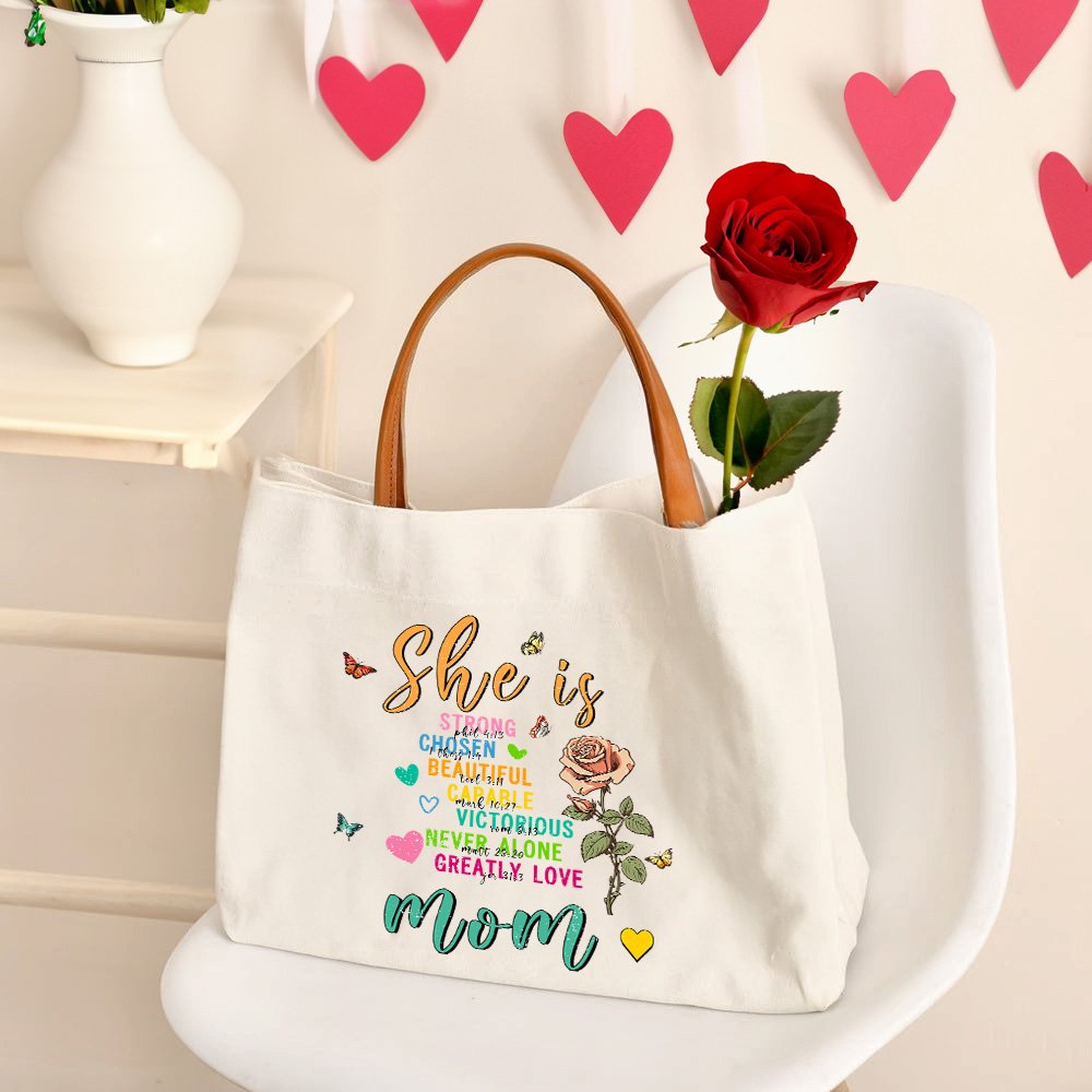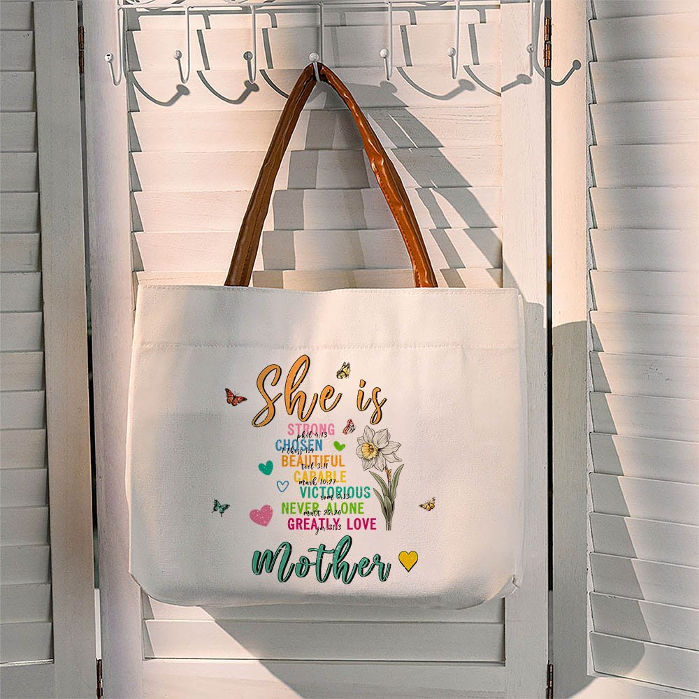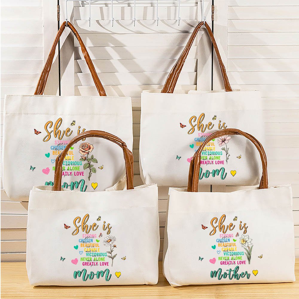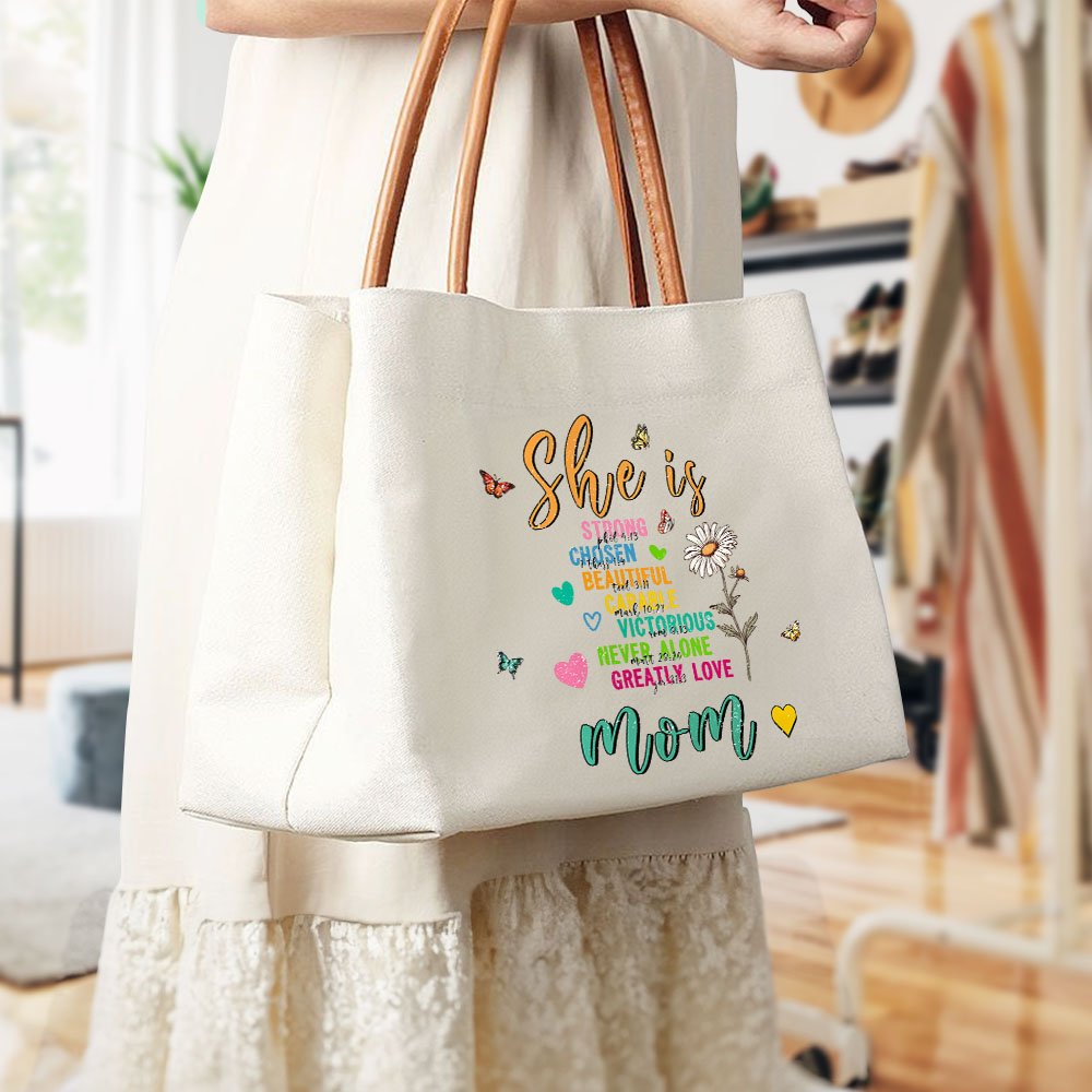 Diese personalisierte Canvas-Tasche verfügt über eine einzigartige Kombination von Geburtstagsblume und Schmetterlinge Design und ist mit einigen herzlichen Worte lobt Mütter wie stark, gewählt, schön, fähig, siegreich, nie allein, sehr Liebe gedruckt, so dass es eine durchdachte und modische Geburtstagsgeschenk für Kinder, um ihre Mütter oder Großmütter zu geben. Darüber hinaus können Sie einen besonderen Spitznamen anpassen, so dass es in einem persönlichen Andenken, das Schönheit mit Funktionalität kombiniert.