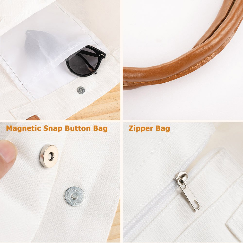 Dieses Produkt ist aus hochwertigem Segeltuch und PU-Ledergriffen gefertigt, die robust und langlebig sind. Das Canvas-Material ist leicht und einfach zu reinigen, und es kann seine Schönheit auch nach längerem Gebrauch beibehalten. Jedes Detail ist sorgfältig ausgearbeitet, um hochwertige Handwerkskunst zu zeigen.
