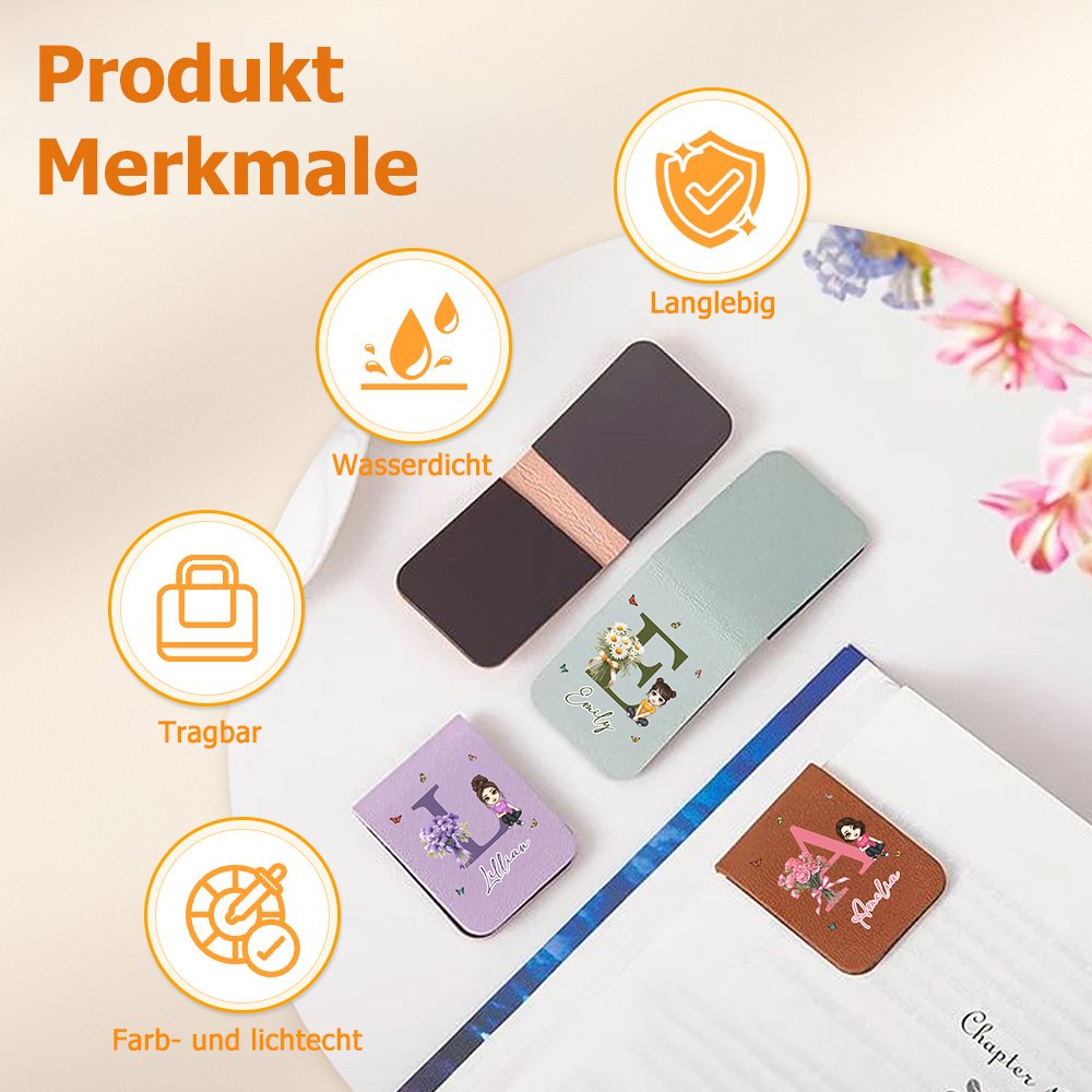 Er ist der perfekte Lesebegleiter. Der magnetische Clip markiert Ihren Platz genau, sodass Sie leicht dort weitermachen können, wo Sie aufgehört haben, und Ihre Leseeffizienz erhöht wird. Mit seiner niedlichen Figur, den Geburtsblumen und dem individuellen Namen ist er auch ein zartes Accessoire, das Ihrem Buch ein gemütliches und stilvolles Flair verleiht und Nützlichkeit mit Schönheit verbindet.