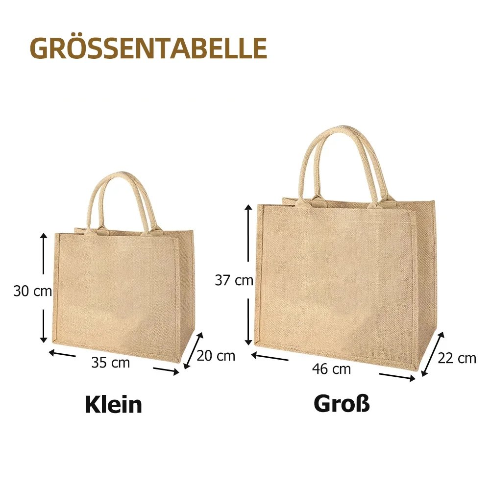 Diese Tragetasche ist aus hochwertigem Jutematerial gefertigt und hält dem täglichen Gebrauch und den Anforderungen Ihres geschäftigen Lebens stand. Die verstärkten Nähte und die robuste Konstruktion sorgen für eine lange Haltbarkeit und machen sie zu einem idealen Begleiter für Ihre täglichen Abenteuer. Ob Sie zum Strand gehen, Besorgungen machen oder eine besondere Veranstaltung besuchen, diese Tasche wird Ihr zuverlässiger und stilvoller Begleiter sein.