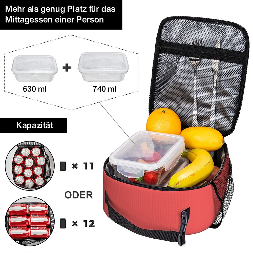 Das Außenmaterial aus hochwertigem Oxford-Stoff ist robust und langlebig, und das Futter hat eine isolierende Wirkung, die dazu beiträgt, Ihre Lebensmittel frisch und bei der richtigen Temperatur zu halten. Das Material ist strapazierfähig und wasserdicht, so dass es dem täglichen Gebrauch und verschiedenen Outdoor-Aktivitäten standhält. Die Brotzeittasche hat einen Tragegriff und eine Netztasche an der Seite, in der Wasserflaschen oder andere Kleinigkeiten verstaut werden können, was besonders praktisch ist.