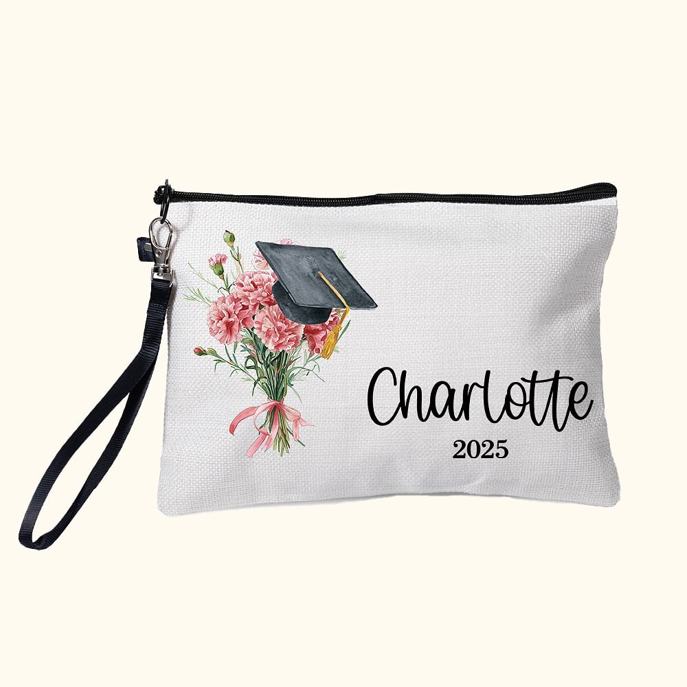 Diese Schminktasche zeigt eine Abschlusskappe und eine Geburtsblume, die akademische Leistungen und persönliches Wachstum symbolisieren. Die Schminktasche kann auch mit deinem Namen und dem Jahr deines Abschlusses versehen werden, um sie noch unverwechselbarer zu machen.