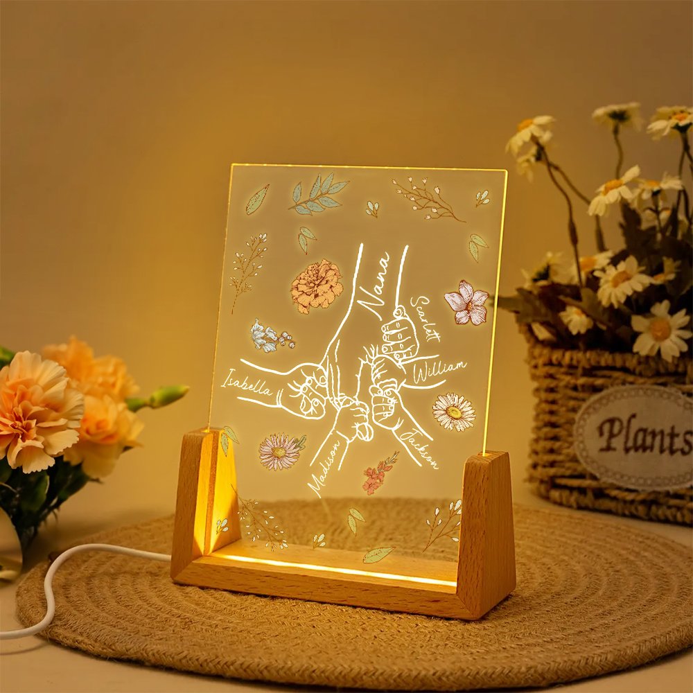 | Merkmale: | Nicht verblassendes LED-Nachtlicht, Große Hände halten kleine Hände, Geburtsblumen-Design |