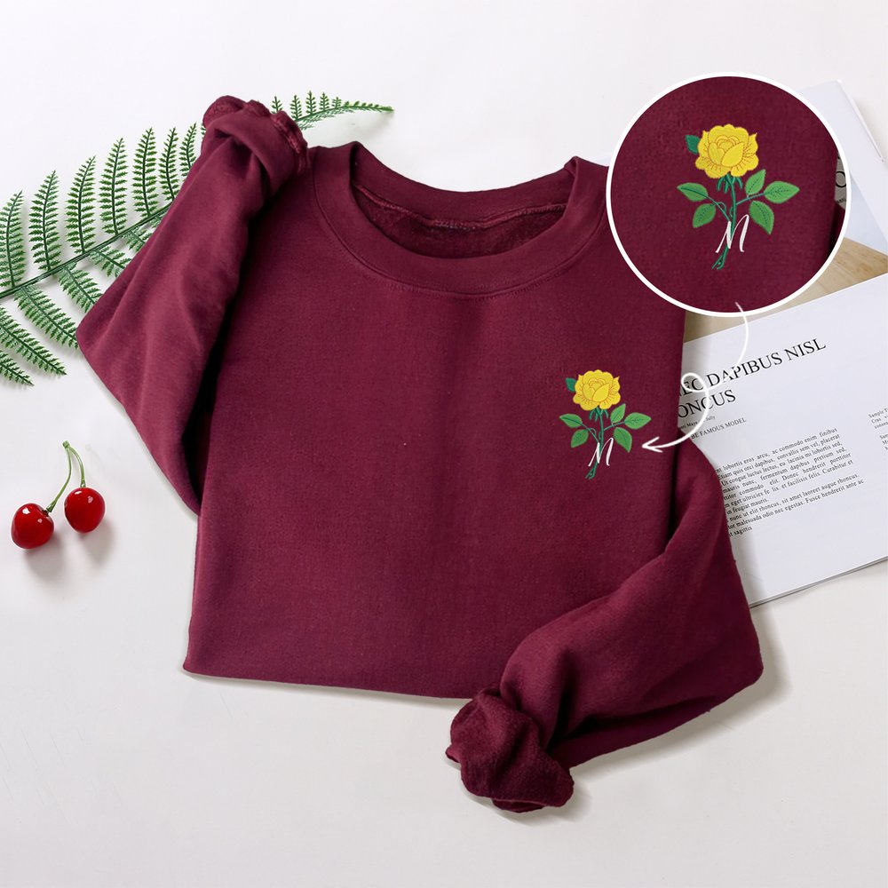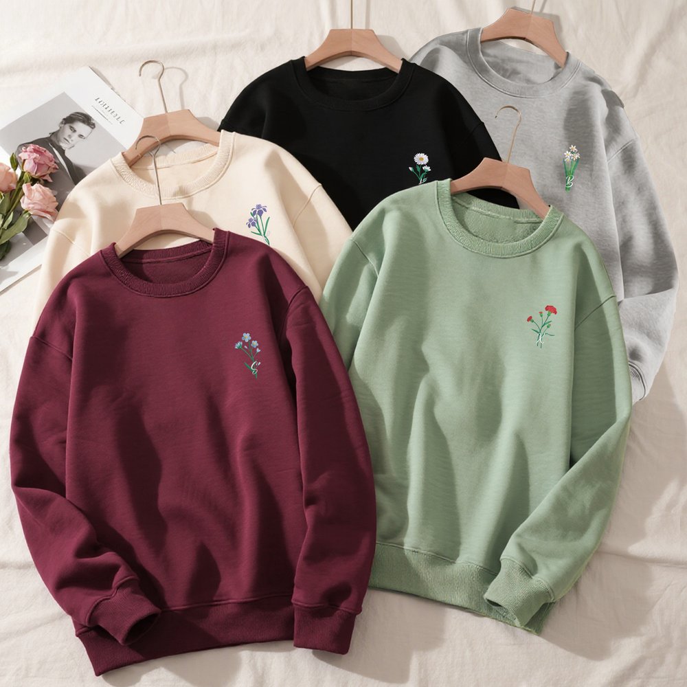 Personalisiertes Besticktes Geburtsblume Sweatshirt mit Seitentasche und Initiale Stickerei Geburtstag Geschenk für Familie Freunde
