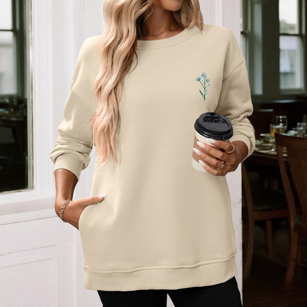 Dieses Sweatshirt mit Taschen ist mit einer individuellen Geburtsblume und einer Initiale bestickt. Jede Blume steht für einen bestimmten Monat und symbolisiert einzigartige Persönlichkeiten und Segenswünsche. So wird aus einem gewöhnlichen Sweatshirt ein unverwechselbares Erinnerungsstück.