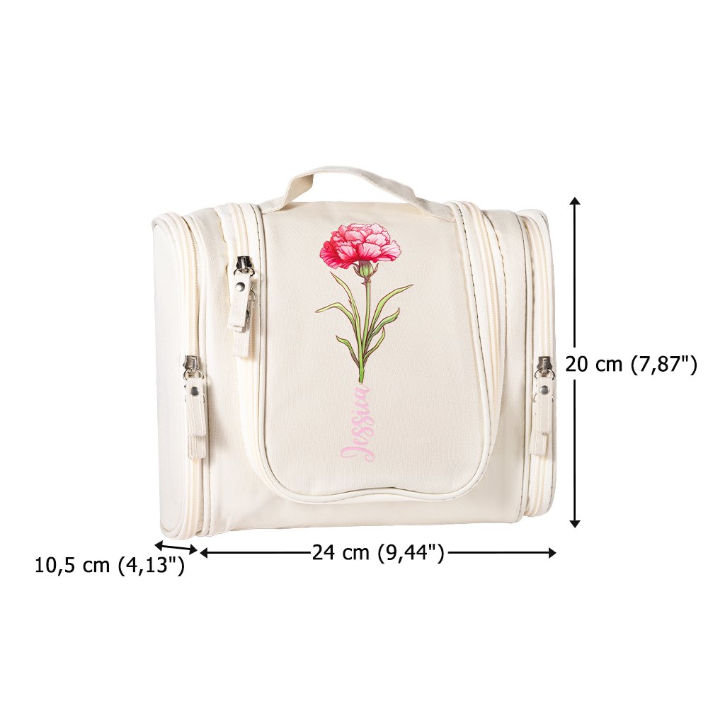 Jeder Kulturbeutel kann mit einer zarten Illustration der Geburtsblume und dem Namen des Empfängers personalisiert werden, was Ihrer Make-up-Organisation eine besondere und einzigartige Note verleiht.