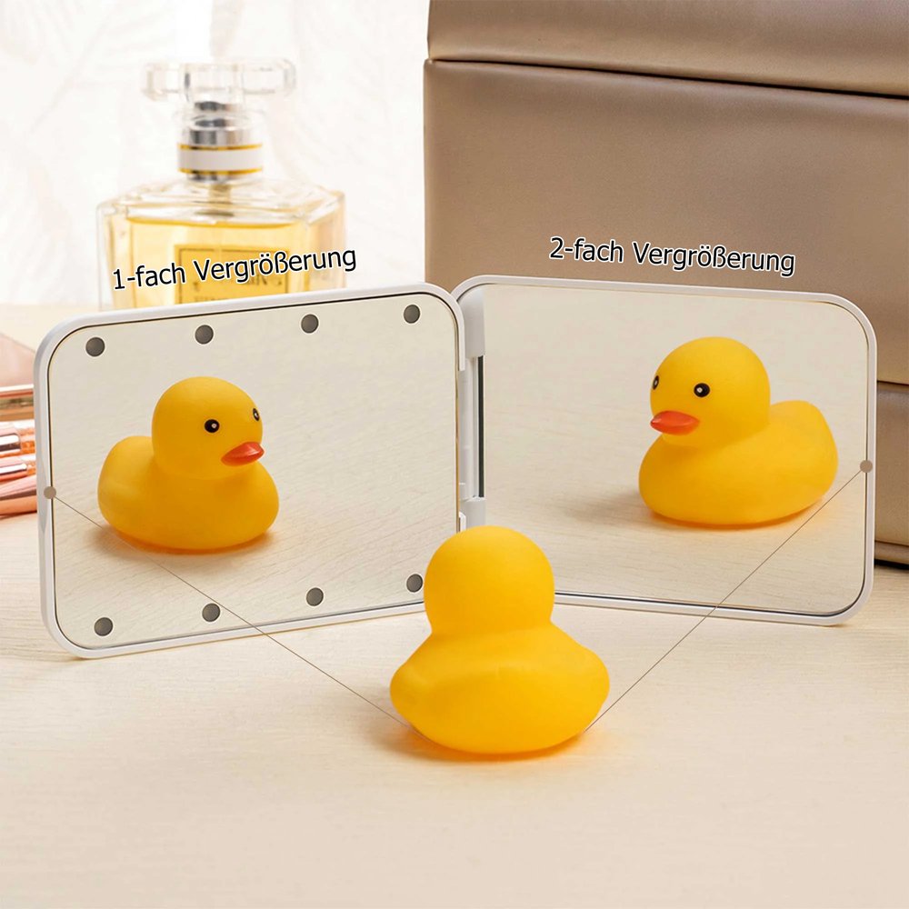 Ob für das tägliche Schminken, unterwegs auf Reisen oder bei besonderen Anlässen wie Kostümpartys oder Fotoaufnahmen – dieser Spiegel erfüllt zuverlässig alle Anforderungen. Das faltbare Design spart Platz und ermöglicht es, ihn problemlos in der Tasche zu verstauen, sodass Sie jederzeit schnelle Korrekturen und ein perfektes Styling vornehmen können.