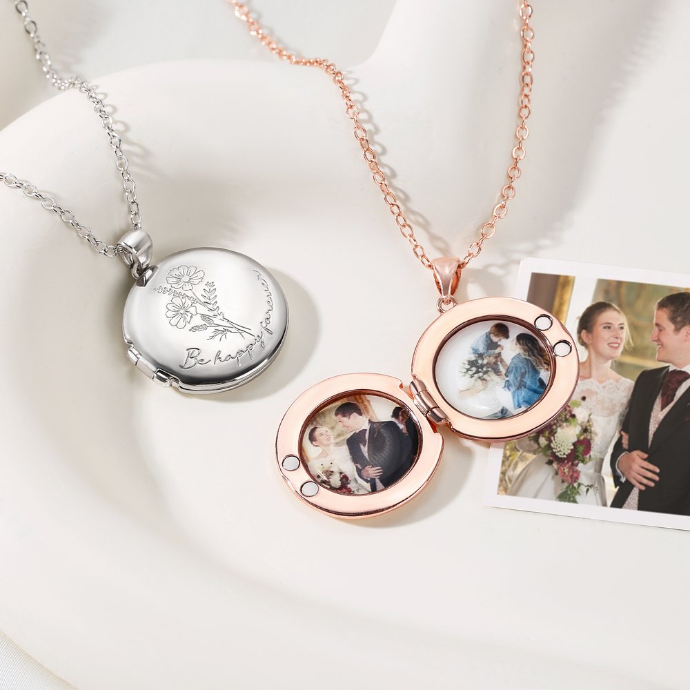 Diese personalisierte Foto Medaillon-Halskette mit Geburtsblume ist eine herzliche Möglichkeit, wertvolle Erinnerungen immer nah am Herzen zu tragen. Die Medaillon lässt sich öffnen, um Platz für ein geliebtes Foto zu bieten und ist somit das perfekte Erinnerungsstück.