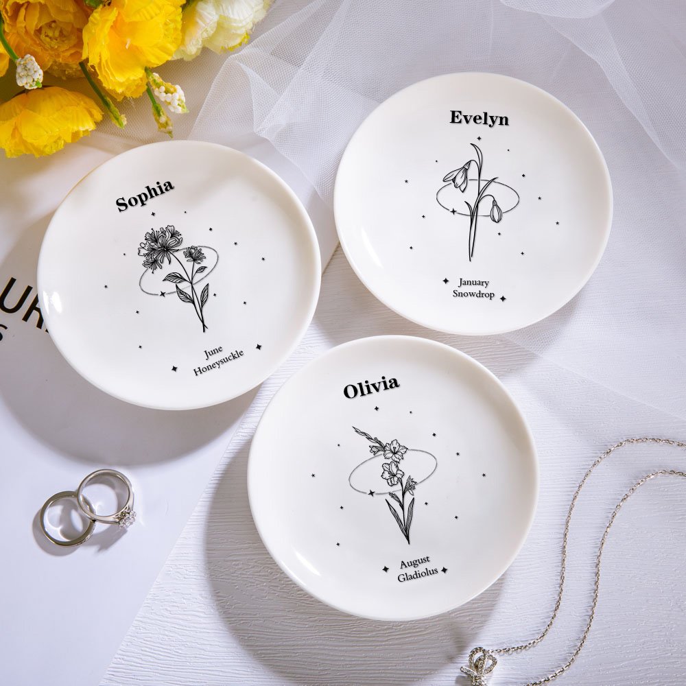 Jede Geburtsblume hat eine besondere Bedeutung und soll symbolisch für die Eigenschaften der Menschen stehen, die in diesem bestimmten Monat geboren sind. Ein einzigartiges Schmuckstück mit der Geburtsblume und dem Namen des Beschenkten zu gestalten, ist definitiv ein überraschendes und rührendes Geschenk (HERVORRAGENDE VERARBEITUNG): Das Schmucktablett ist aus Keramik gefertigt, und dank der guten handwerklichen Verarbeitung ist das Tablett gleichmäßig dick und glatt auf der Oberfläche.