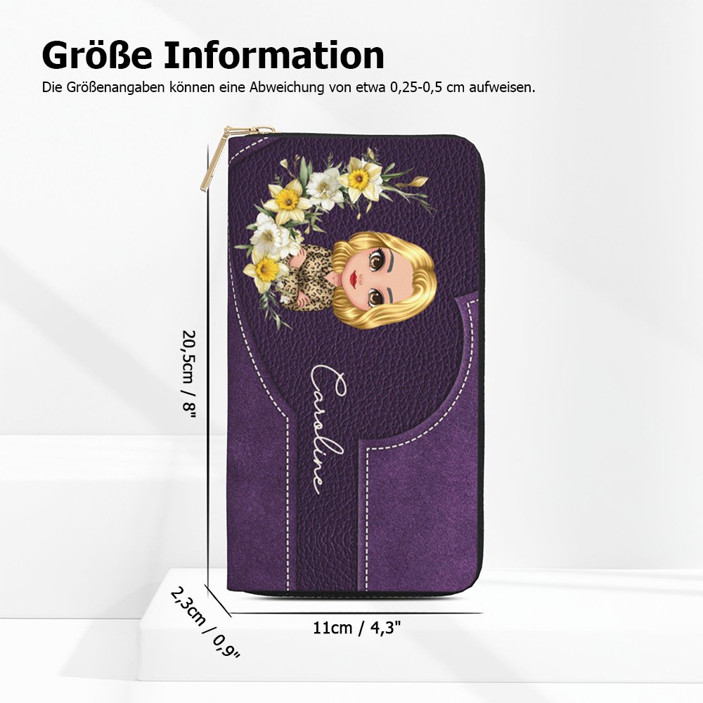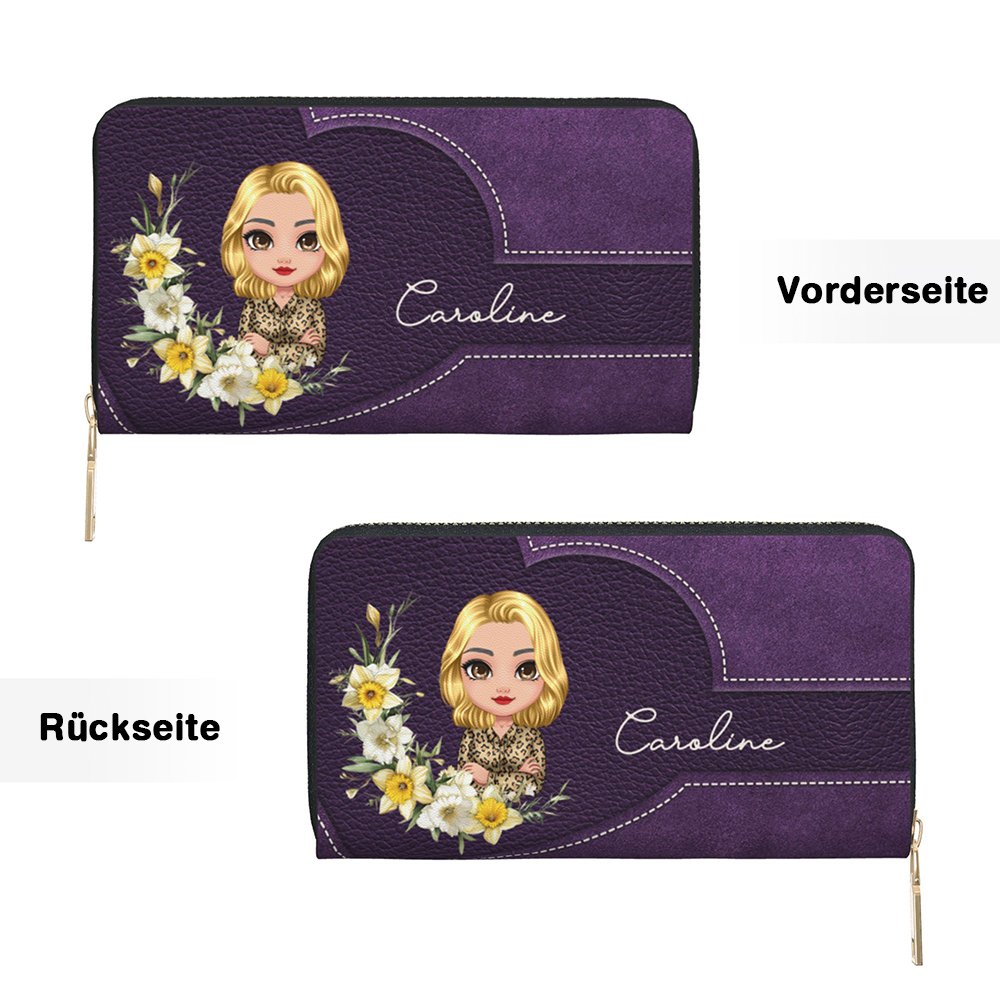 Diese Geldbörse ist mit einem gestickten Herzmuster versehen, das sofort einen Hauch von Wärme und Liebe vermittelt. Jede dieser Geldbörsen hat ein wunderschönes Kranzdesign, das von niedlichen Cartoonfiguren begleitet wird, die die Geburtsblumen in den verschiedenen Monaten darstellen. Dies symbolisiert einzigartige Persönlichkeiten, spendet Segen und verleiht ihnen eine persönliche Bedeutung. Darüber hinaus können Sie den Namen nach Ihren Wünschen anpassen. So wird jede Geldbörse zu einem Unikat, mit dem Sie Ihre tiefe Zuneigung zu Ihrer Mutter oder Großmutter auf ganz besondere Weise ausdrücken können.