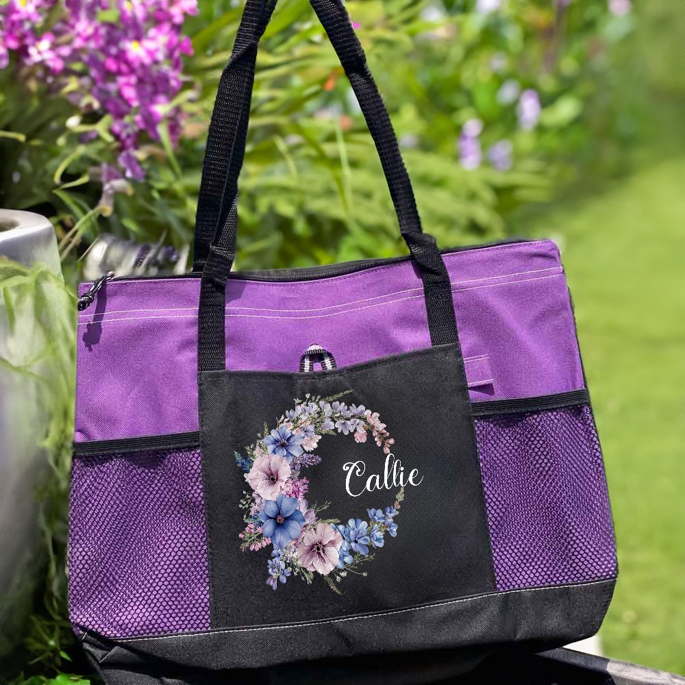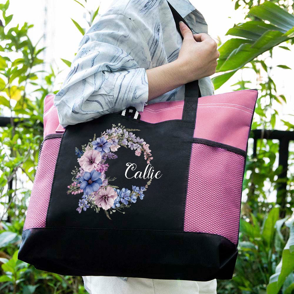 Diese große Tragetasche zeigt ein wunderschönes Geburtsblumenkranz-Design, das mit einem Namen individuell gestaltet werden kann. Das macht sie zu einem außergewöhnlichen und durchdachten Geschenk für jede Frau in Ihrem Leben und zu einem schicken Accessoire, das jedes Outfit ergänzt.