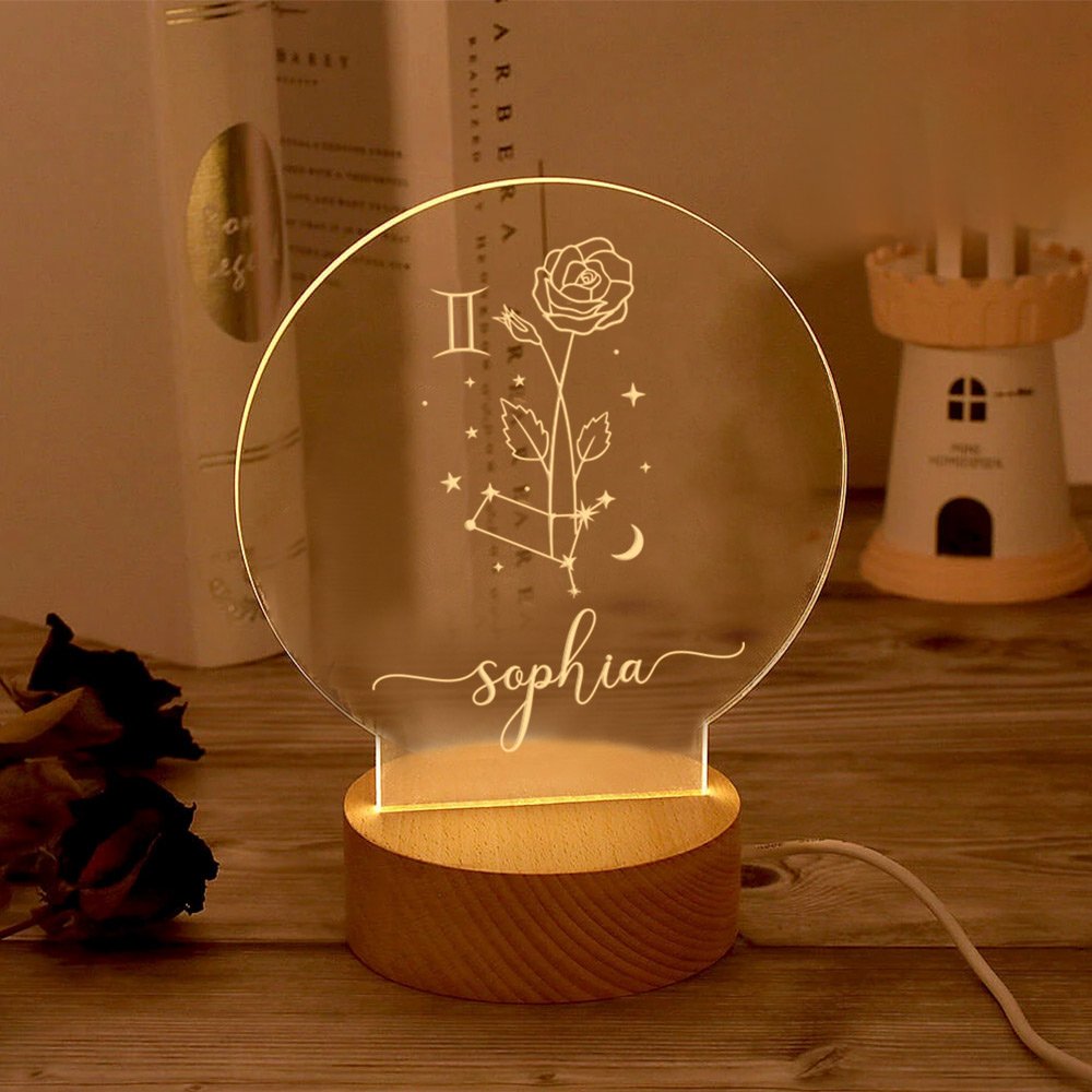 This personalized night light adds a romantic and warm atmosphere to your life with its unique design. Choosing a pattern that combines a birth flower with a zodiac sign and customizing a name makes each night light unique and the best choice for you to express your personality. Whether it is for a loved one or a child, it can be the best companion.