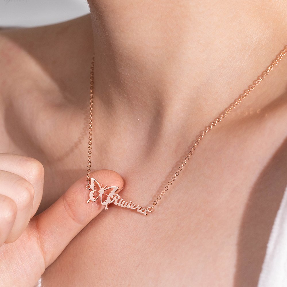 Der Schmetterling symbolisiert Freiheit und Schönheit und wird auch als "fliegende Blume" bezeichnet. Die Verschmelzung der Schmetterlingshalskette und der Namenshalskette schafft eine einzigartige und personalisierte Halskette. Diese Schmetterlingshalskette verleiht Frauen einen eleganten Stil. (GEBURTSMONAT SCHMETTERLING): Für jeden Geburtsmonat wird ein anderer Schmetterling entworfen. Wählen Sie also einen schönen Schmetterling mit Ihrem eigenen oder dem Geburtsmonat der Beschenkten!