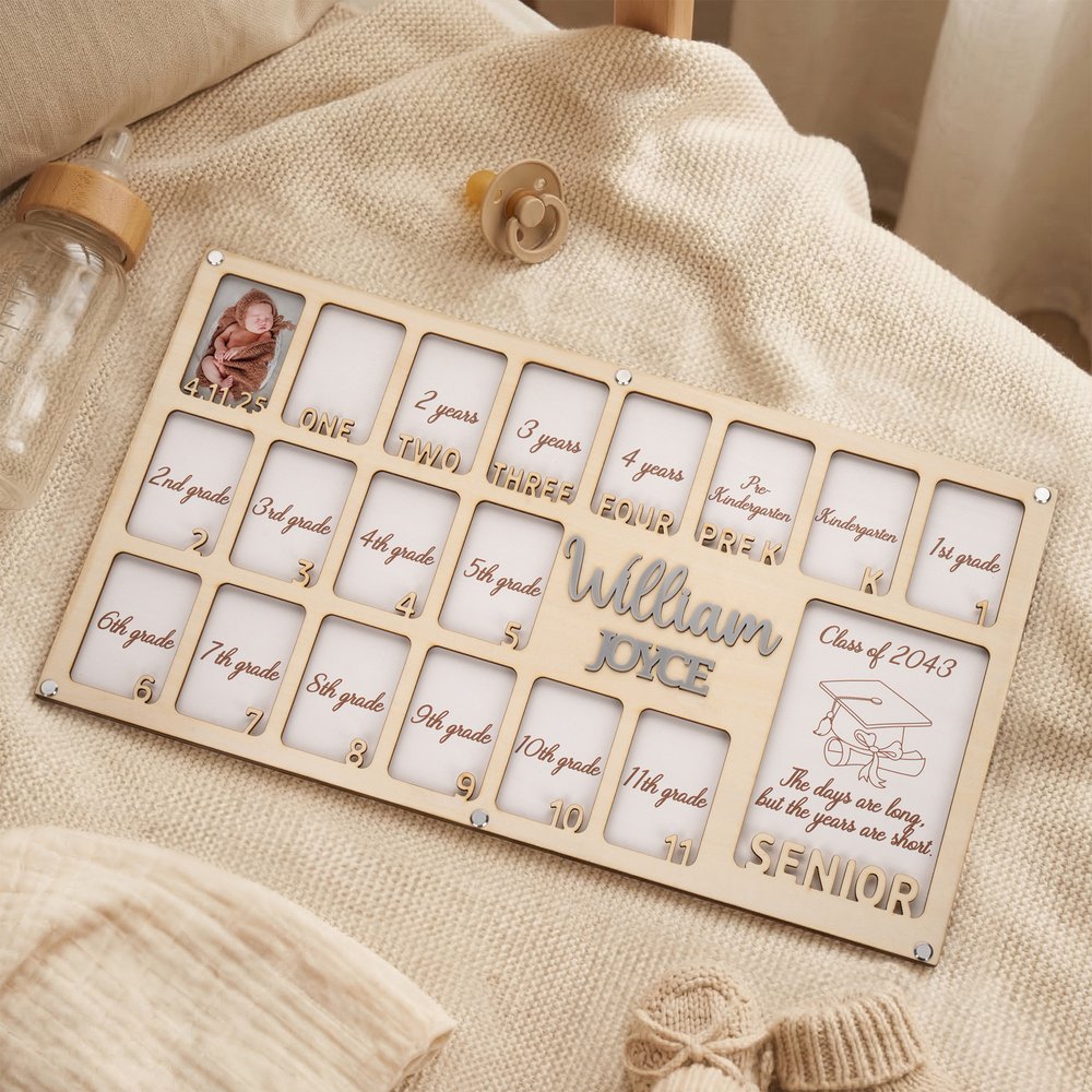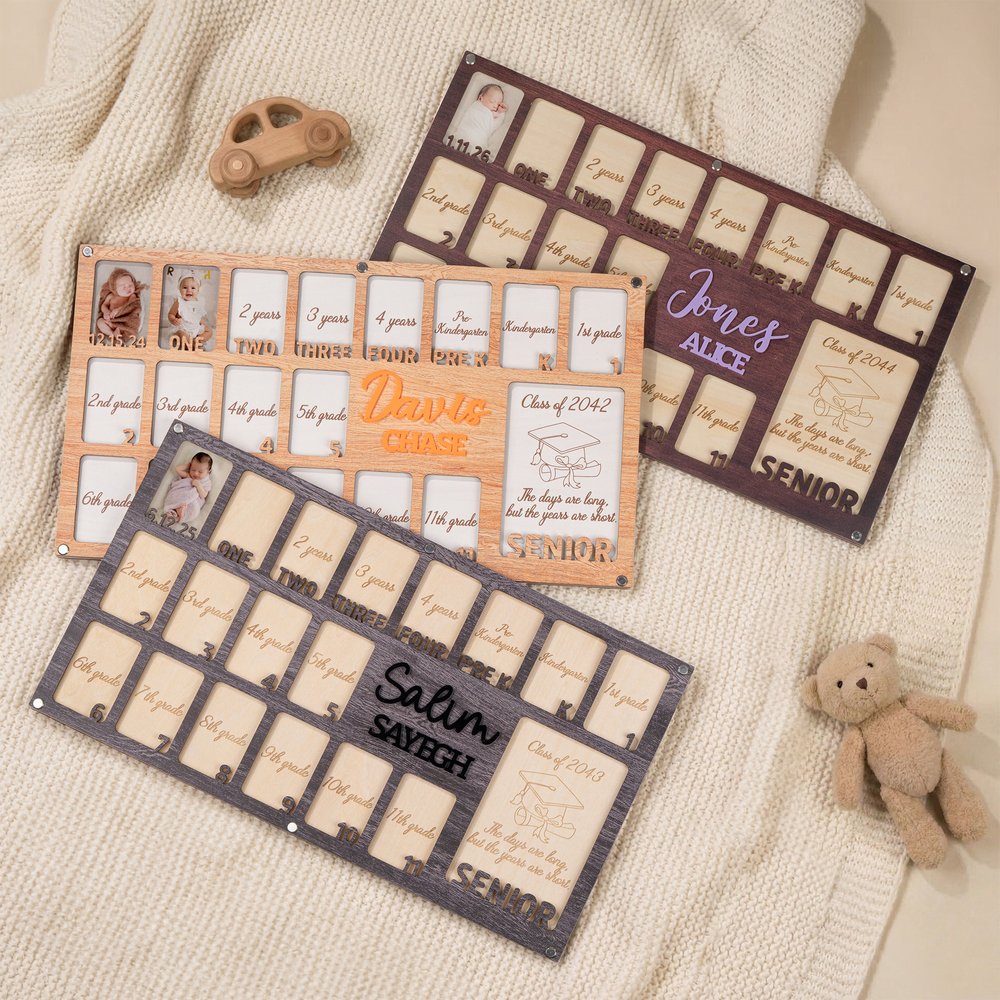 Personalisierte Geburt bis zum Abschluss der Schule Jahre hölzerne Memorial Fotorahmen mit Namen ersten Tag der Schule Graduierung Geschenk für Kinder Absolventen