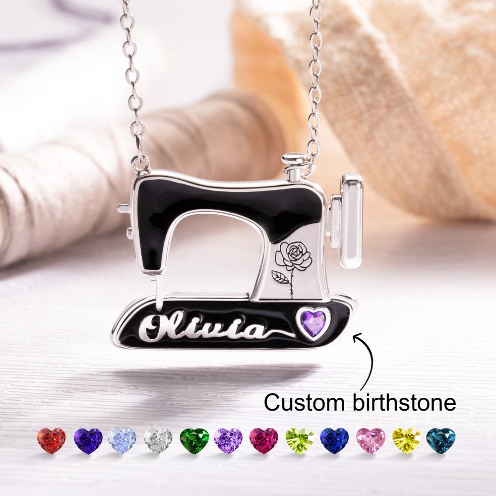 Sie können den Geburtsstein und die Geburtsblume entsprechend dem Monat anpassen. Darüber hinaus können Sie auch einen beliebigen Text auf der Unterseite der Nähmaschine anpassen, es kann ein Name oder ein kurzer Gruß sein! -