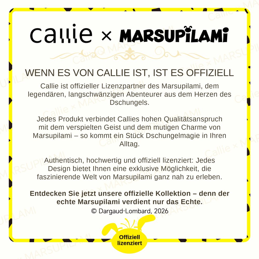 Callie fühlt sich geehrt, in Zusammenarbeit mit dem Rechteinhaber dieses kultigen belgischen Zeichentrickfilms offiziell lizenzierte Marsupilami®-Produkte anzubieten. Wir stellen hochwertige Produkte her, die den zeitlosen Charme von Marsupilami authentisch einfangen. Wir garantieren 100 %ige Authentizität - so können Sie diesen klassischen Cartoon-Schatz voller Freude und Nostalgie mit vollem Vertrauen nach Hause bringen.