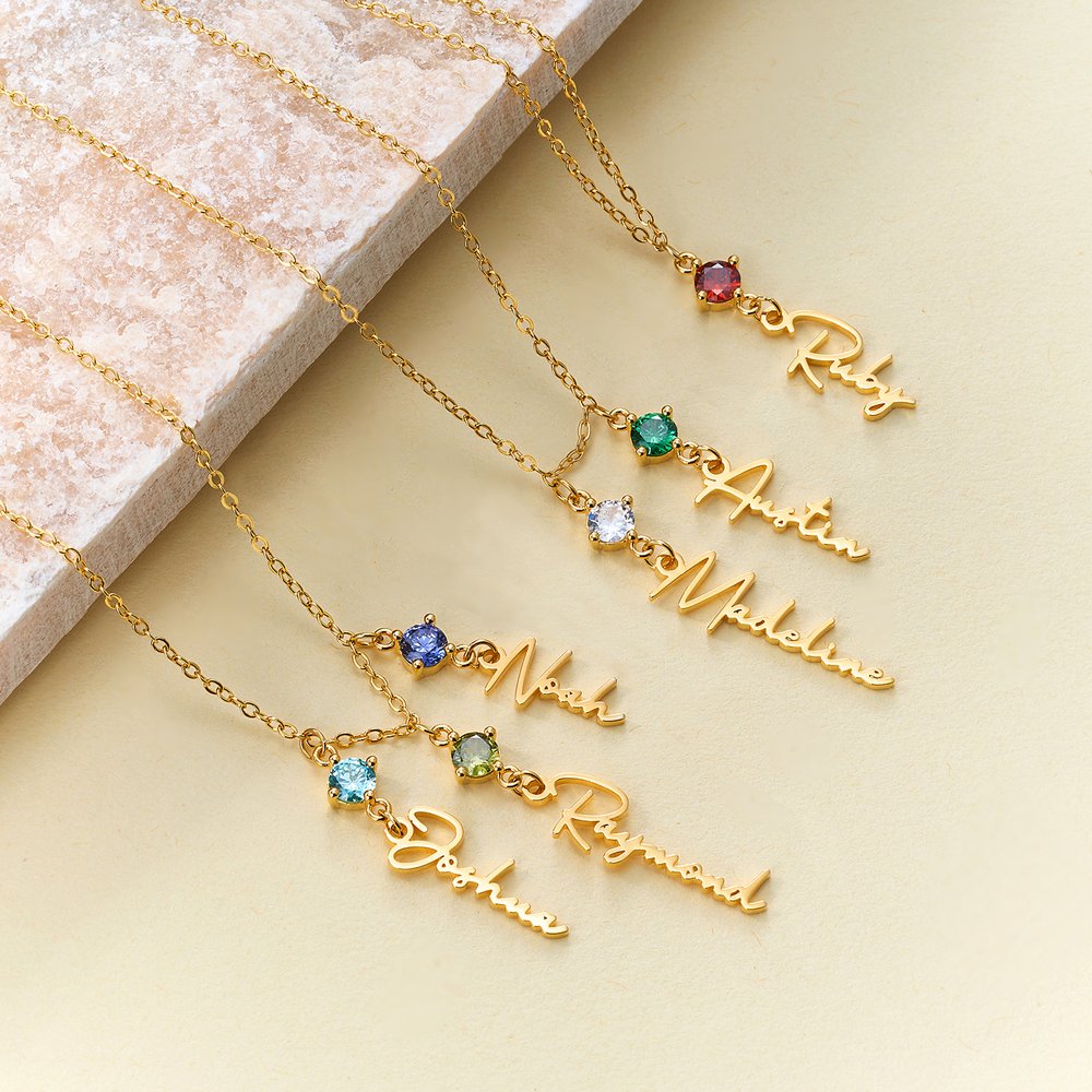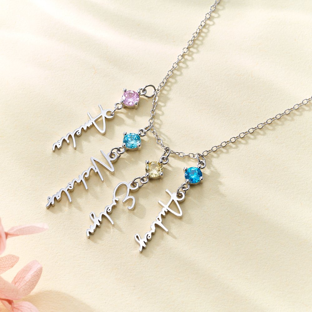 Der Anhänger dieser Halskette ist mit einem bezaubernden Geburtssteinmotiv versehen, das diesem Schmuckstück eine schlichte und exquisite Schönheit verleiht. Er kann mit 1-8 Geburtssteinen und Namen angepasst werden, um jedes Familienmitglied zu repräsentieren und Ihre einzigartige Persönlichkeit widerzuspiegeln.