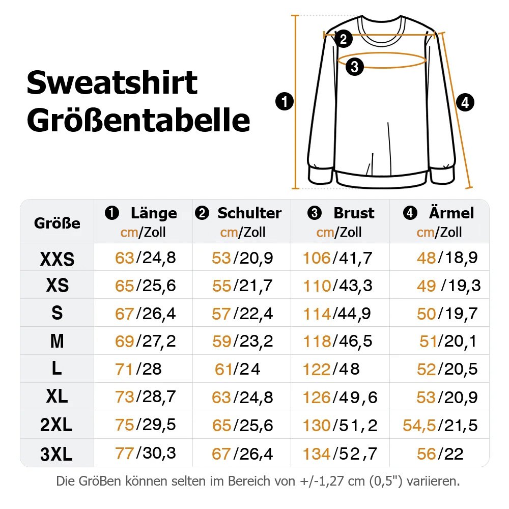 | Größe: | T-Shirt Größe: XXS, XS, S, M, L, XL, 2XL, 3XL, 4XL, 5XL Sweatshirt Größe: XXS, XS, S, M, L, XL, 2XL , 3XL Hoodie Größe: XXS, XS, S, M, L, XL, XXL, 3XL |