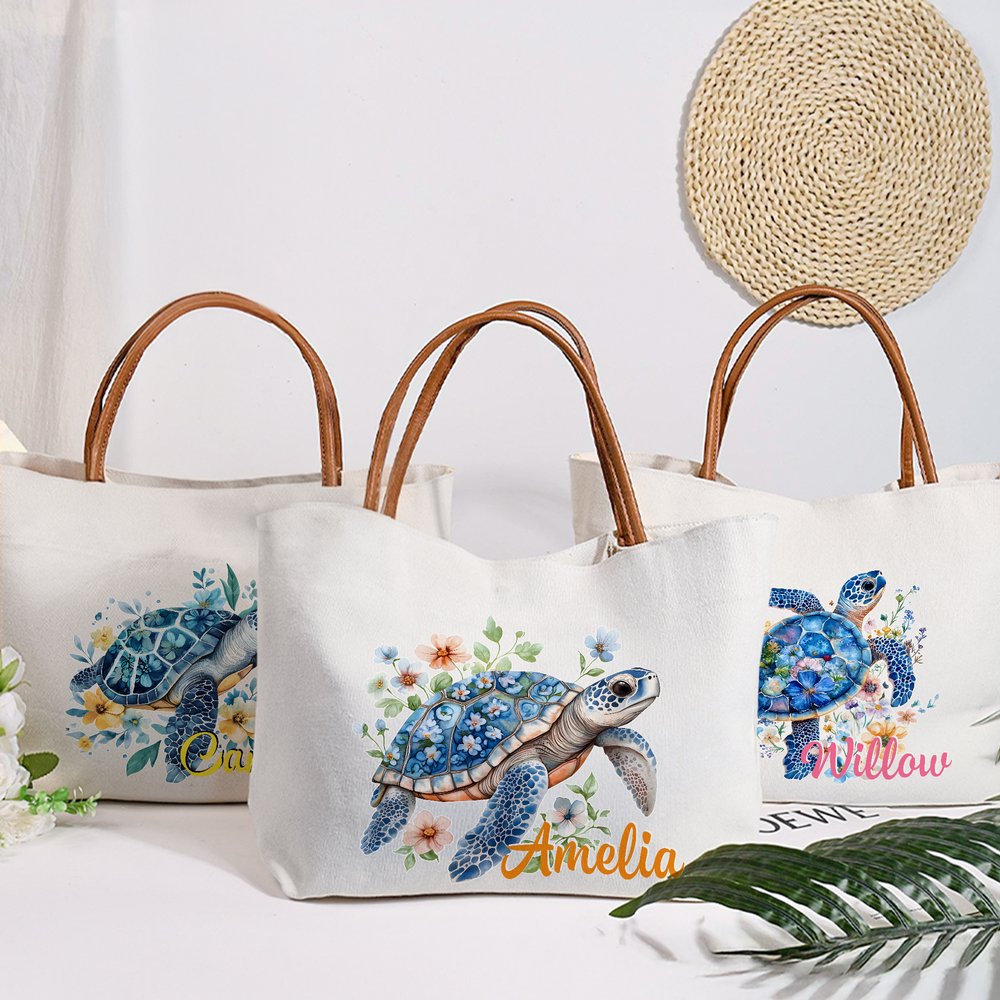 Diese Tragetasche besticht durch ihre naturgetreuen Schildkröten- und Blumenmuster. Erhältlich in 19 Mustern, die jeweils Meeresschildkröten zeigen, die zwischen lebhaften Blumenmustern schwimmen und so natürliche Schönheit und künstlerisches Design perfekt miteinander verbinden. Mit 3 Schriftarten und 10 Farboptionen für den Namen können Sie Ihre ideale Kombination kreieren, um Ihren einzigartigen Sinn für Mode zum Ausdruck zu bringen.