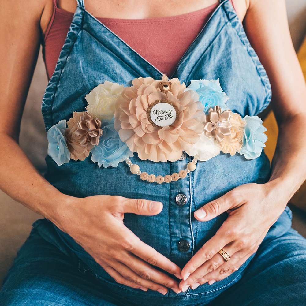 Feiern Sie die Ankunft Ihres Babys mit unserer Blumenschärpe für die Mutterschaft. Verwenden Sie unsere Babybauch-Schärpe, um Ihr Schwangerschaftsoutfit bei Ihrer Babyparty und Ihrer Mutterschaftsfotosession aufzupeppen. Sie können auch das Geschlecht Ihres neuen Babys auf subtile und elegante Weise mit der Schwangerschaftsblumenschärpe enthüllen. (BREITE ANWENDUNG): Wenn Sie auf der Suche nach einem Geschenk für die werdende Mutter sind, ist diese Schwangerschaftsschärpe ein ideales Andenken und Geschenk für werdende Mütter, um sich an die Schwangerschaft zu erinnern. Sie hat nicht nur während der Schwangerschaft Freude daran, sondern kann sie auch während des Fototermins mit dem Neugeborenen und bei späteren Schwangerschaften wiederverwenden. Personalisieren Sie diese Schärpe mit dem Namen Ihres Babys! Vergessen Sie nicht, eine passende Anstecknadel für die werdende Oma, die werdende Tante, den großen Bruder, die große Schwester usw. zu kaufen.