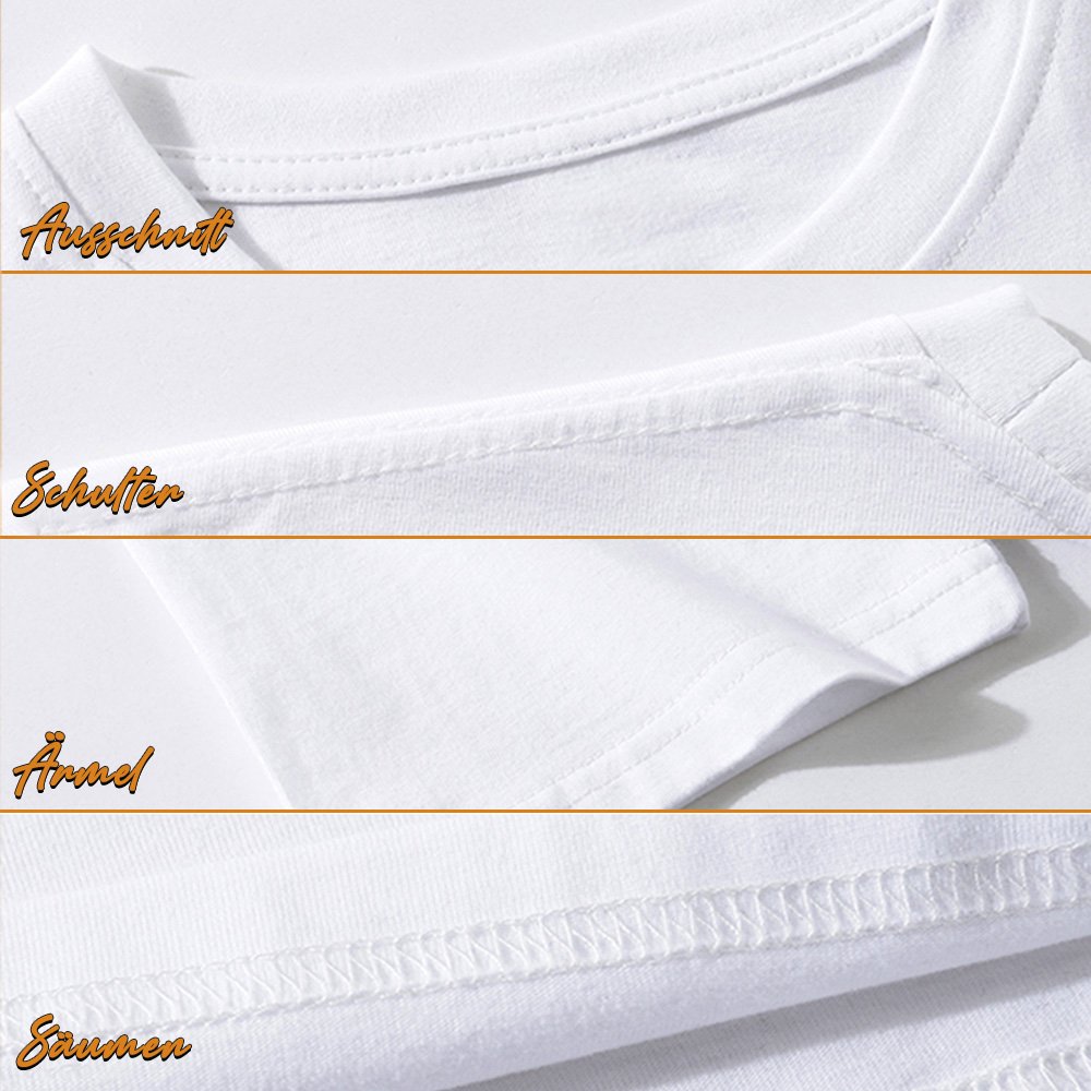 Das T-Shirt ist aus hautfreundlicher Baumwolle gefertigt, die ein angenehmes und luxuriöses Tragegefühl vermittelt. Durch die hervorragende Verarbeitung und die waschbaren, robusten Eigenschaften sind diese Kleidungsstücke darauf ausgelegt, ihre ursprüngliche Form und Farbe über lange Zeit zu erhalten. So können Sie sich auf eine langanhaltende Nutzung freuen, ohne dass sie an Farbintensität oder Form verlieren.