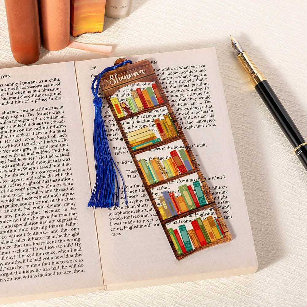 Unsere Lesezeichen sind in einem einfachen und kreativen Designstil gehalten. Das Bücherregal ist mit einer Vielzahl von Büchern gefüllt, und mit der natürlichen Holzmaserung Farbe, gibt es ein antikes Buch Duft in einem Augenblick! Der Name des Empfängers kann auf dem Lesezeichen personalisiert werden, was es zu einem einzigartigen und exklusiven Geschenk macht.