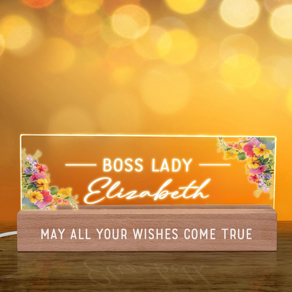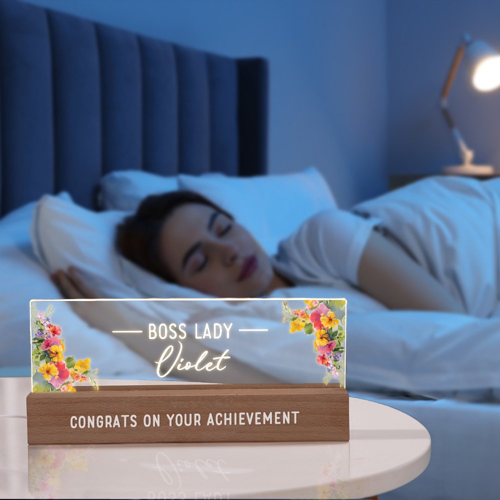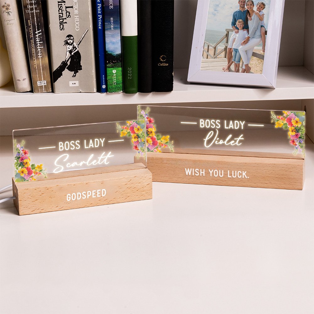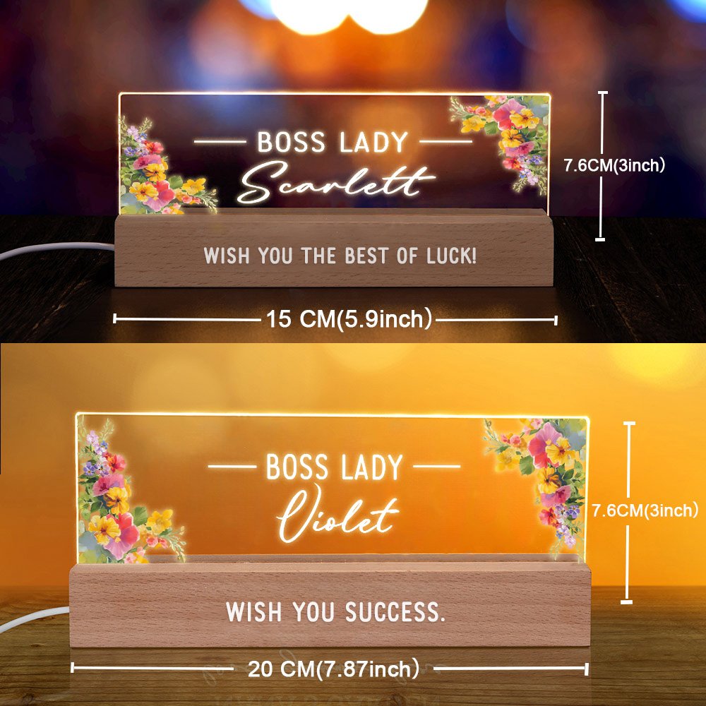 Dieses Nachtlicht hat Blumen am Rand und "BOSS LADY" in der Mitte aufgedruckt. Sie können es mit Ihrem Namen oder Text anpassen, um es noch einzigartiger aussehen zu lassen. Dieses Nachtlicht ist das durchdachte Geschenk für die Chefin, das sie zu besserer Arbeit inspirieren kann.