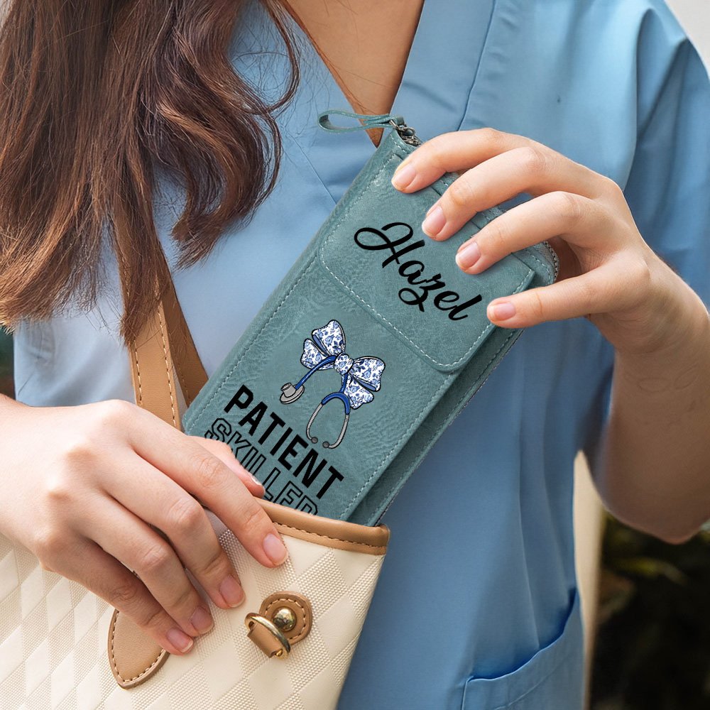 Dieses Portemonnaie ist mit den Worten "PATIENT" und "SKILLED" bedruckt und enthält Schleifen- und Stethoskop-Elemente, die die perfekte Kombination aus Professionalität und Wärme symbolisieren. Das Design zeigt nicht nur die Professionalität des medizinischen Personals, sondern verleiht ihm auch einen Hauch von Weichheit und persönlichem Charme. Darüber hinaus bieten wir die Möglichkeit der Namensanpassung, so dass dieses Portemonnaie nicht nur ein tägliches Bedürfnis, sondern auch ein Symbol für Identität und Geschmack ist.