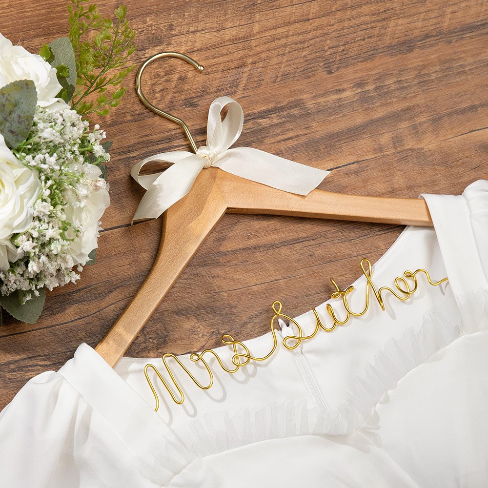 Jeder Kleiderbügel für das Brautkleid wird aus hochwertigen Materialien hergestellt und ist ein tolles Geschenk für die Braut zur Hochzeitsfeier! Dieser Kleiderbügel für das Brautkleid ist eine großartige Möglichkeit, um Falten zu vermeiden und das Kleid sicher und sauber zu halten, aber er ist auch das perfekte Hochzeits-Accessoire und die perfekte Dekoration für alle Fotos Ihres Hochzeitstages!