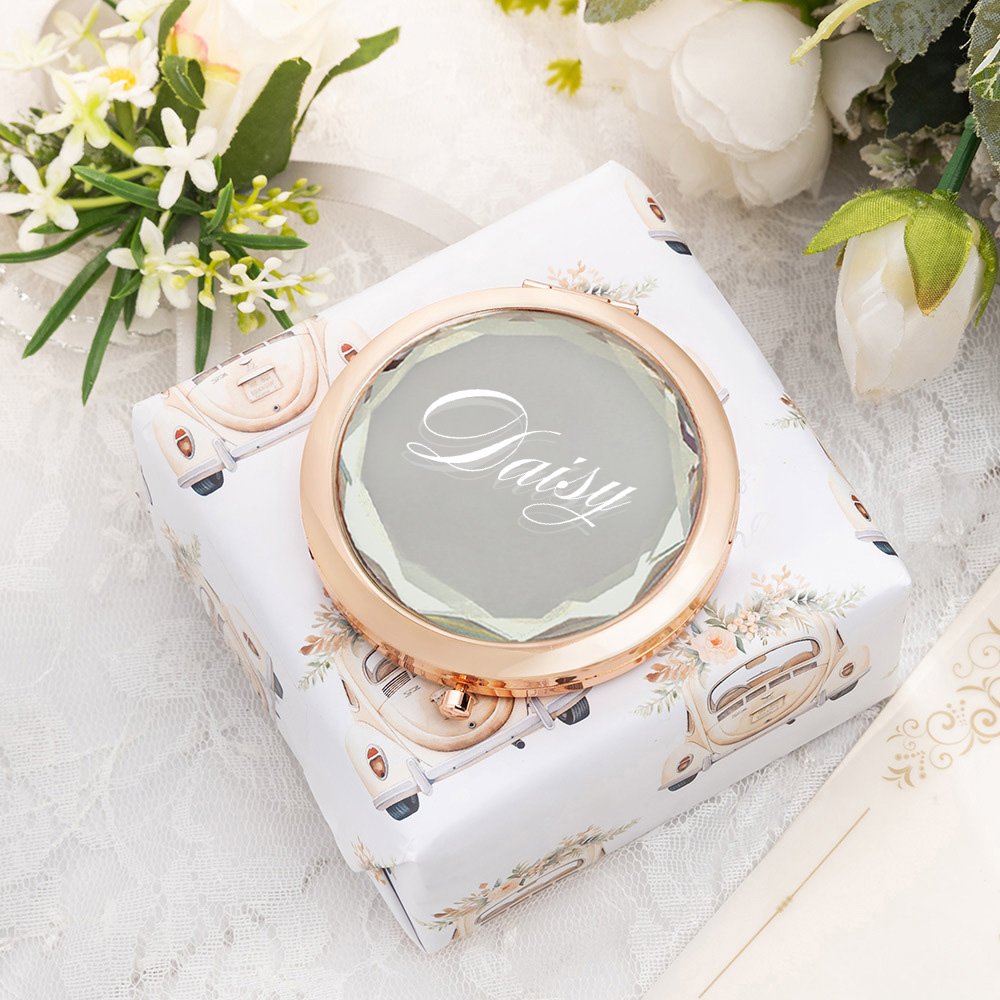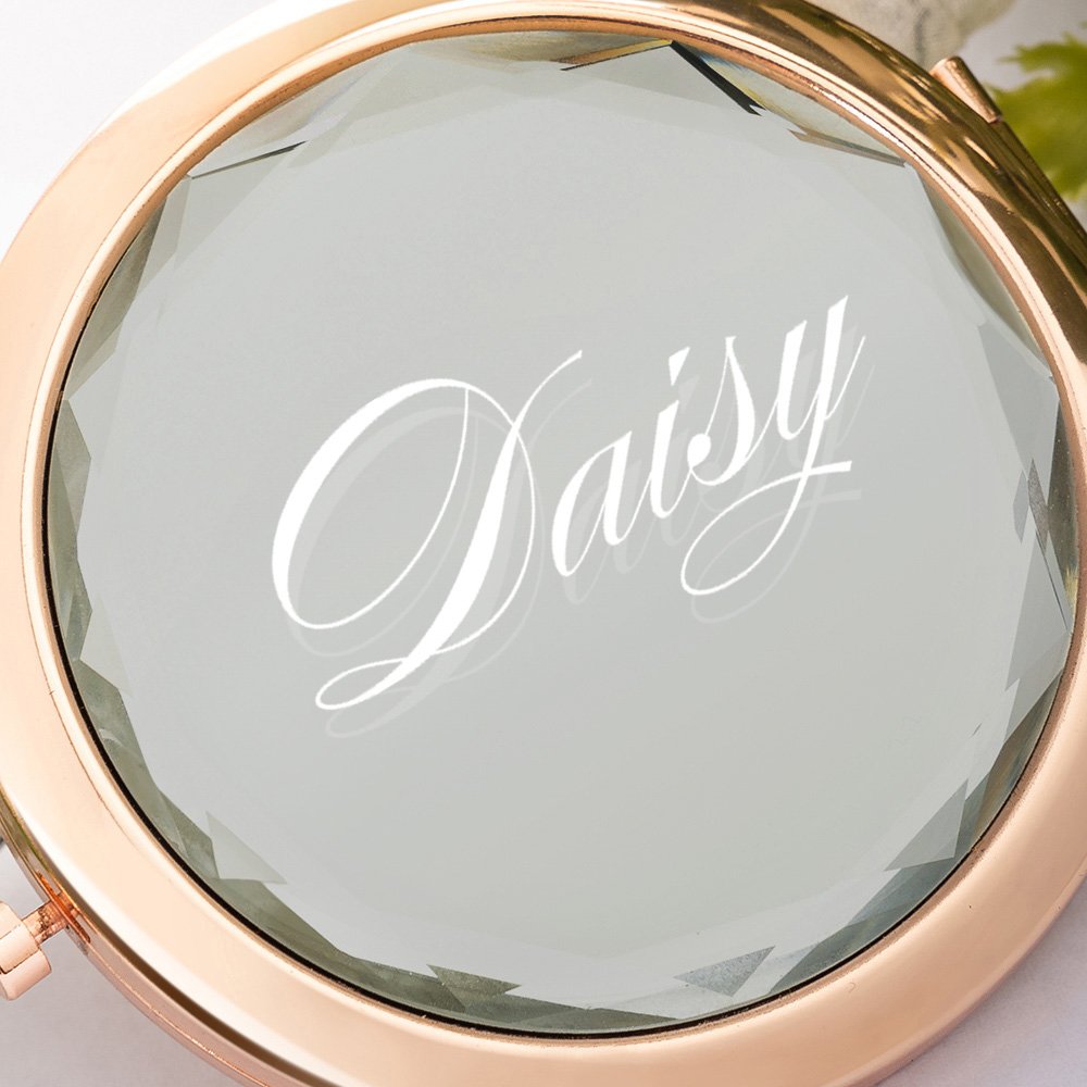 Mit dem Namen Ihrer Brautjungfern oder dem Namen Ihres Liebsten versehen, ist dieser personalisierte Kompaktspiegel in Roségold ein wunderbares Geschenk für eine Hochzeitsgesellschaft.