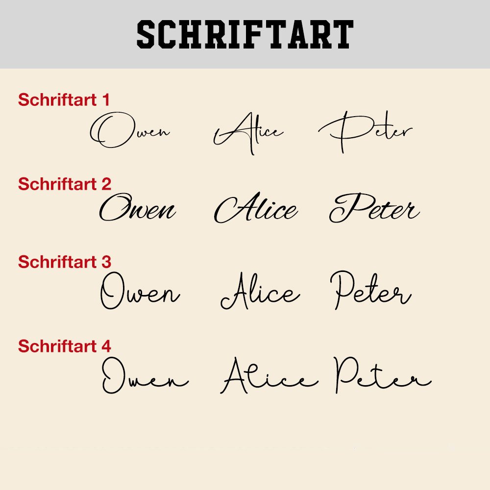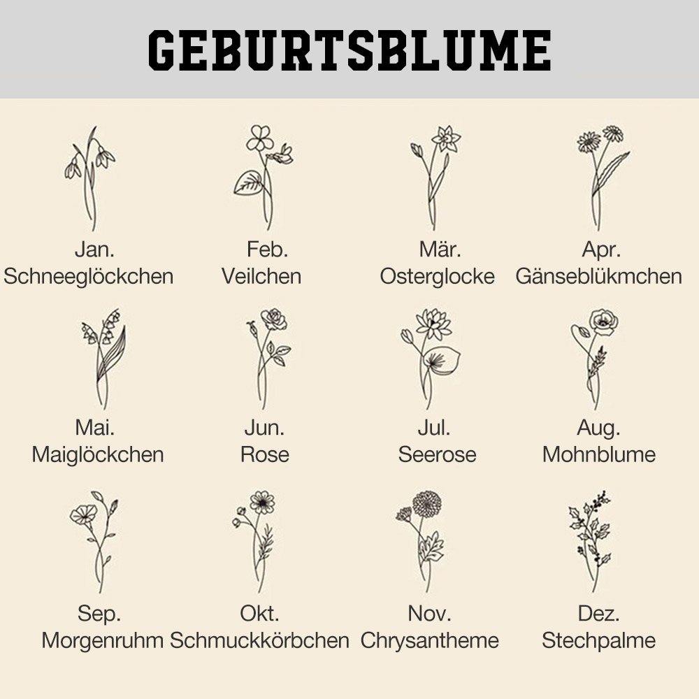 Mit bis zu 4 Schriftarten, 6 Farben und 12 Geburtsblumen zur Auswahl, können Sie den Schlüsselanhänger nach Ihren Wünschen anpassen.