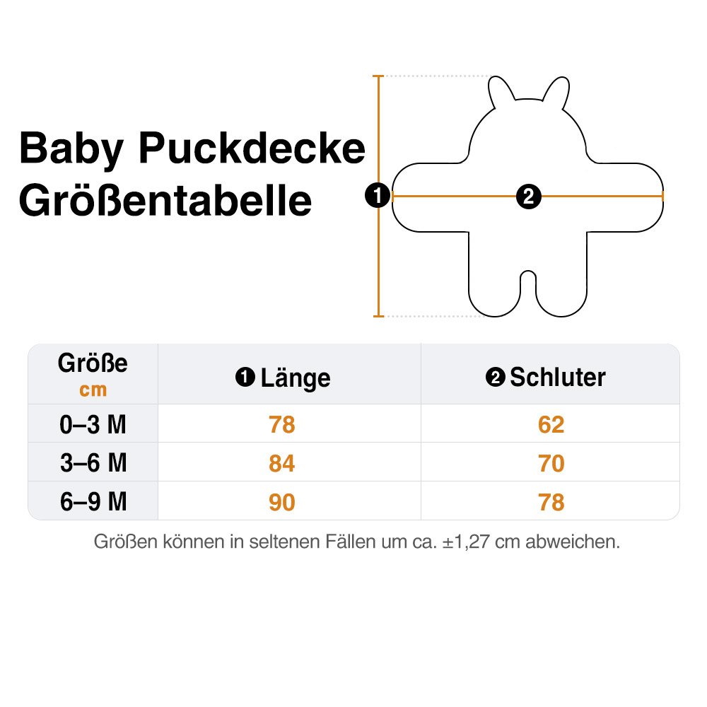 | Größe: | 0–3 M – 78 cm × 62 cm 3–6 M – 84 cm × 70 cm 6–9 M – 90 cm × 78 cm |