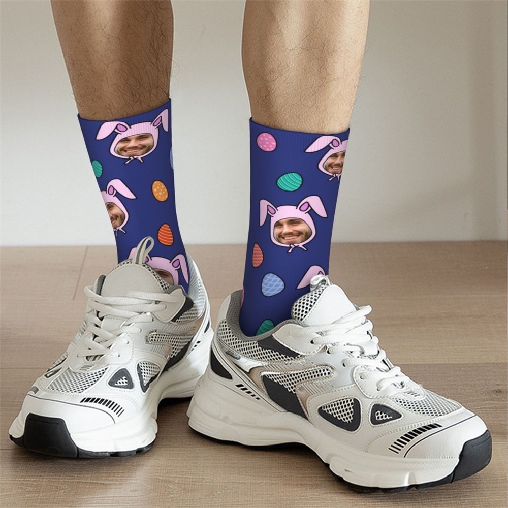 These socks are adorned with vibrant and colorful Easter eggs, adding an extra dose of festive cheer. The eggs feature a variety of hues, patterns, and designs, reminiscent of the joyous Easter egg hunts and celebrations. The multicolor Easter eggs create a playful and lively atmosphere, making these socks the perfect accessory for family gatherings, Easter parties, or birthday celebrations during the Easter season.
