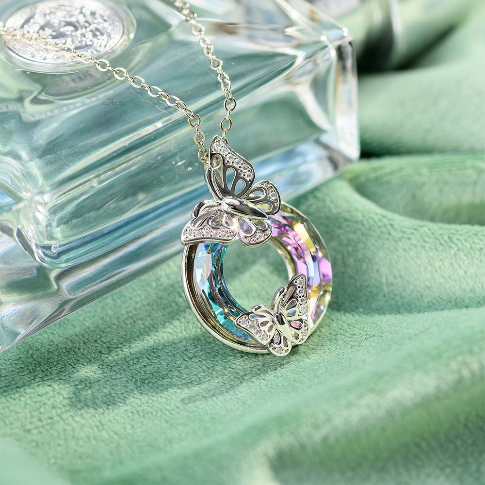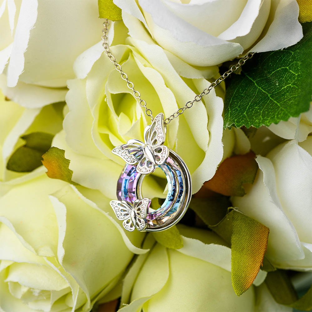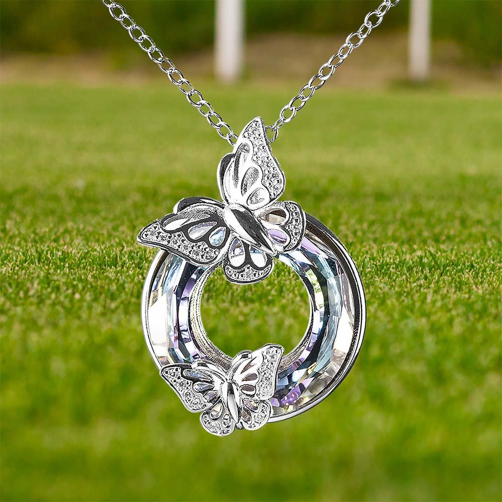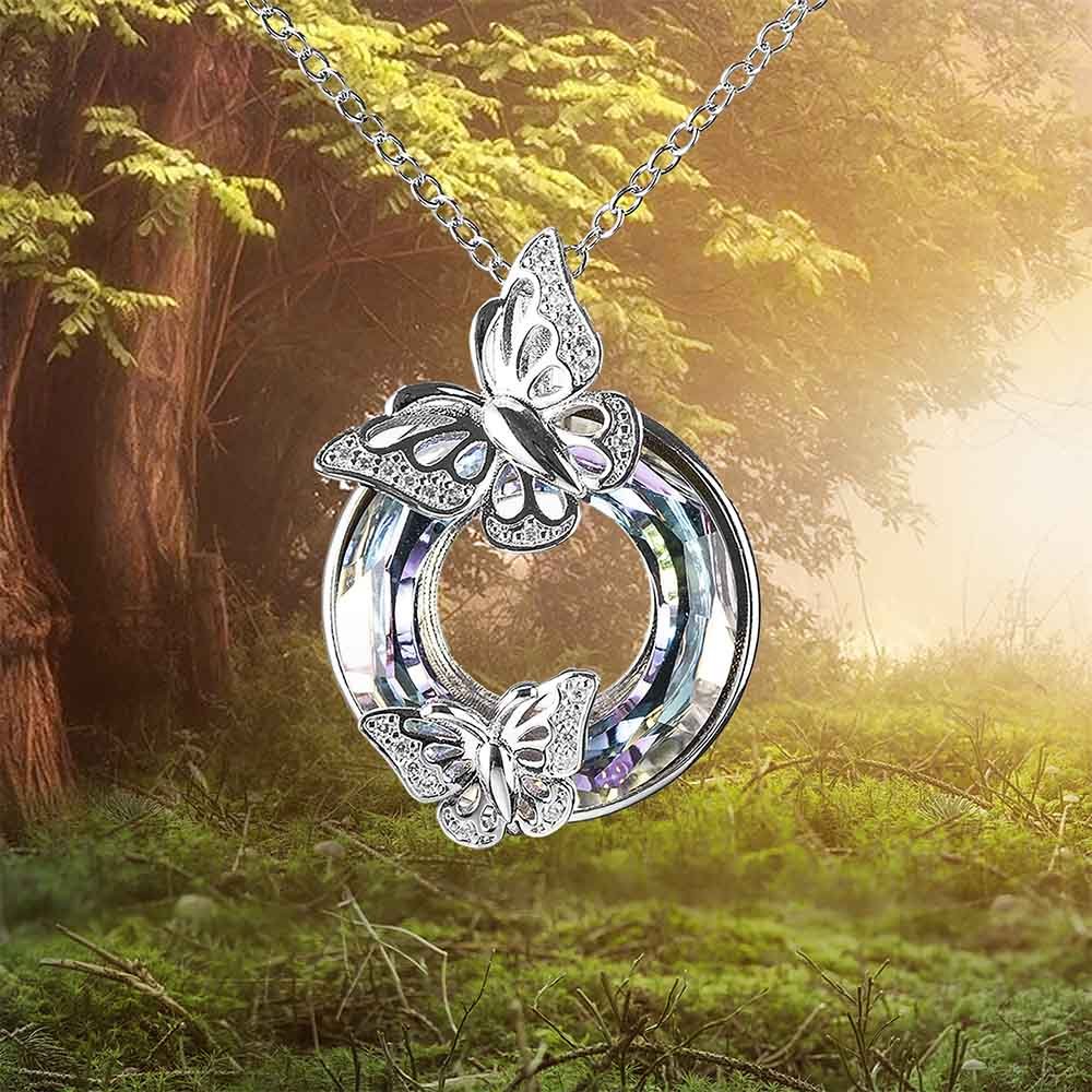 Schmetterlinge Halskette mit Kristall verschönert schön verpackt in einem eleganten Schmuck Geschenkbox. Es ist ein einfaches, aber sinnvolles Geschenk für Ihre Mutter, Großmutter, Schwiegermutter und Patin für Muttertag, Geburtstag, Weihnachten, Neujahr oder einfach nur, weil Sie sie lieben.