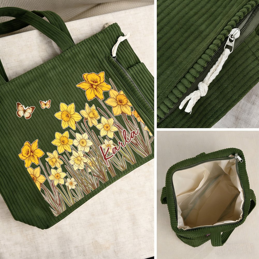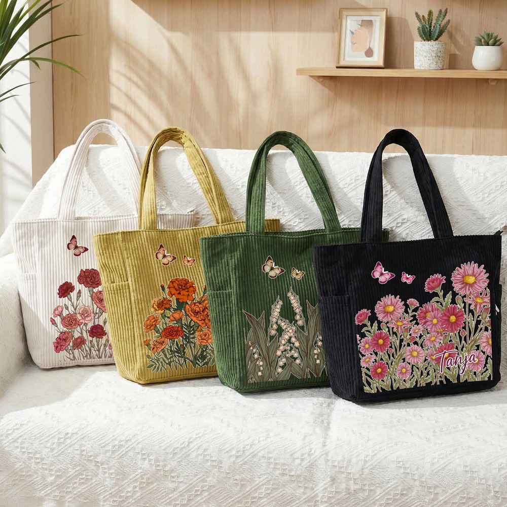 Personalisierter Cord-Shopper im Schmetterlings-Geburtsblumen-Design | mit Namen | Tragetasche | Tote Bag | Muttertag Geburtstag Geschenk für Frauen