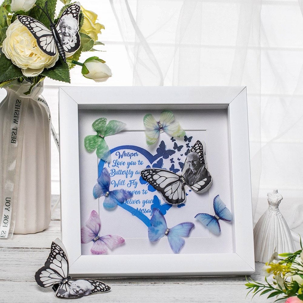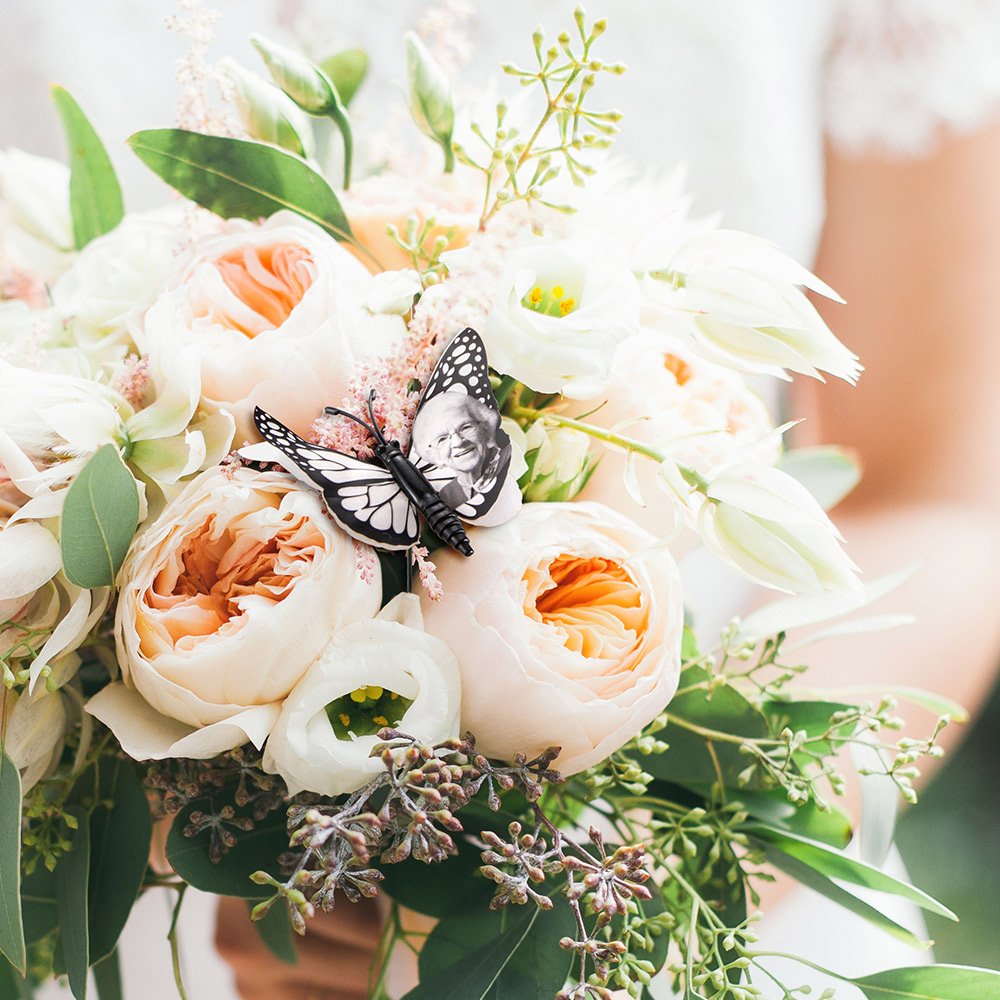 Die Erinnerung an diejenigen, die nicht mit Ihnen an Ihrem besonderen Tag sein konnte, ist das perfekte Geschenk für jede Braut, eine absolut schöne Hommage an verstorbene geliebte Menschen für eine Hochzeit zu begleiten und Zeugen wichtige Momente im Leben. (BREITE ANWENDUNG): Ein wunderschönes Seidenschmetterlings-Souvenir, personalisiert mit einem Bild Ihrer Wahl und mit einem Rahmen verziert. Dieser wunderschöne Schmetterling ist eine schöne Art und Weise, die Verbindung mit Ihrem geliebten Menschen zu markieren und ist ein tolles Andenken und Geschenk. Dieses Produkt enthält einen Schmetterling, einen Rahmen und kann für einen Hochzeitsstrauß verwendet werden.