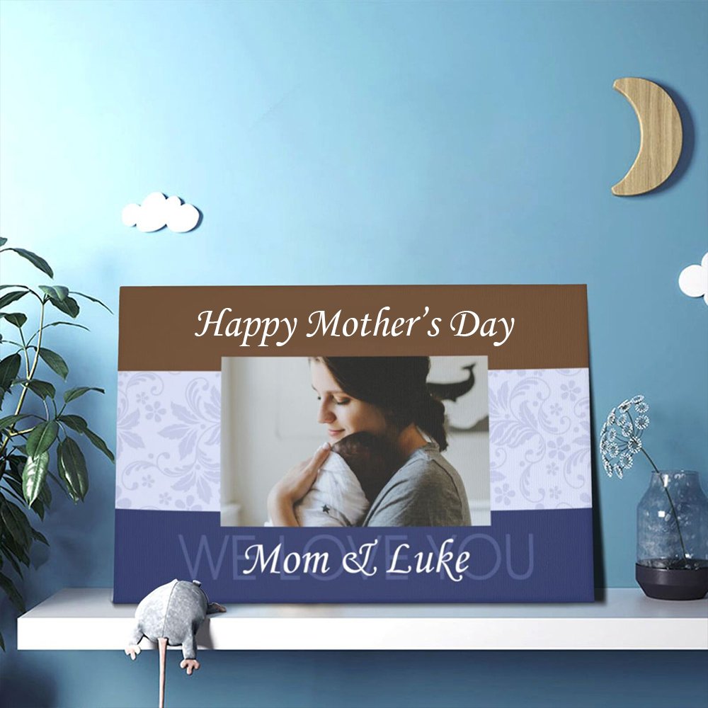 Diese personalisierte Leinwand Foto Malerei ist ein warmes Geschenk speziell gemacht, um Mutter und Baby ersten Muttertag zu feiern. Wählen Sie Ihre Lieblings-Hintergrund eleganten Vintage-Blumen-Stil - die Ruhe der marineblau, die Vitalität der grün, oder die Romantik der weinrot - mit dem Baby-Foto und warme Worte, um eine einzigartige Gedenkstätte zu Ihnen nach Hause hinzufügen. Es ist nicht nur eine Dekoration, sondern auch eine bleibende Erinnerung an die Freude des Muttertags.