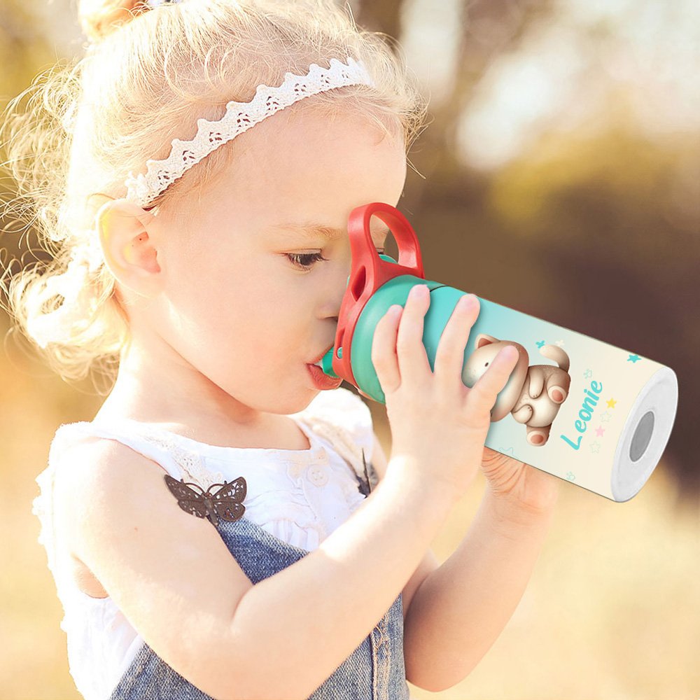 Diese Wasserflasche zeigt 61 liebenswerte Cartoon-Tiere, darunter Bären, Kätzchen und Löwen, kombiniert mit Sternelementen, die eine lebendige und verspielte Atmosphäre schaffen. Mit 7 Hintergrundfarben, darunter rosa, blau, grün und gelb, können Kinder ihr Lieblingstier auswählen und ihren Namen hinzufügen, um eine personalisierte Flasche zu schaffen, die jeden Schluck zu etwas Besonderem macht.