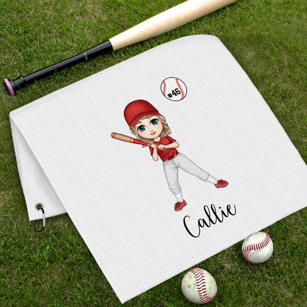 Dieses Sporthandtuch zeigt ein personalisiertes Cartoon-Baseball-Motiv. Es kann mit Figuren unterschiedlichen Geschlechts und Alters gestaltet werden. Sie können auch den Namen und die Nummer des Spielers aufdrucken, um seine Persönlichkeit und seine Liebe zum Baseball zu zeigen und ein perfektes Sport-Accessoire zu schaffen.