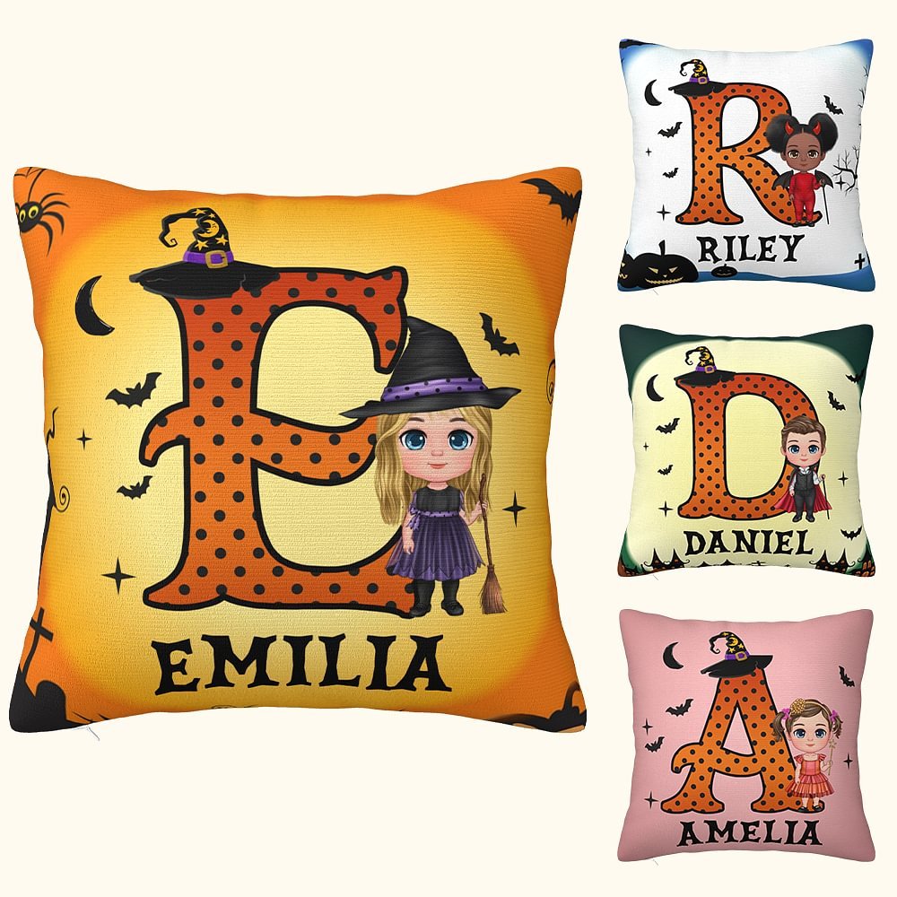 Dieser Kissenbezug zeigt verschiedene Cartoon-Figuren, darunter schelmische Teufel, freundliche Engel, gruselige Vampire, skurrile Hexen, gruselige Mumien und verspielte Skelette! Jedes der farbenfrohen Designs ist voller Persönlichkeit und wird von Kindern jeden Alters geliebt.