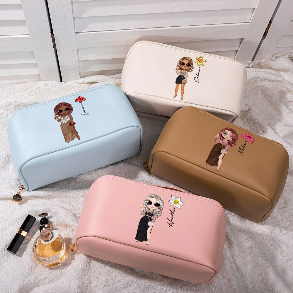 Diese Schminktasche bietet eine persönliche Wahl mit seinem einzigartigen Cartoon-Charakter und Geburtstagsblumen-Design, das nicht nur schön ist, sondern auch eine gedenkende Bedeutung hat. Die Schminktasche ermöglicht es Ihnen auch, Ihren Namen hinzuzufügen, um sie noch unverwechselbarer zu machen.