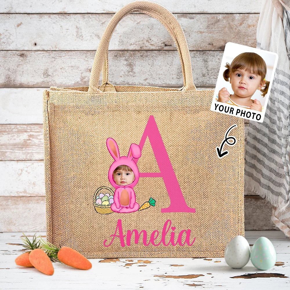 Diese bezaubernde Jutetasche zeigt eine niedliche Zeichentrickfigur in einem Hasenkostüm, eine individuell gestaltbare Initiale in 9 Farben, eine Karotte und einen Korb mit Ostereiern, die den Geist der Feiertage perfekt einfangen. Die individuell gestaltbaren Namen ermöglichen es jedem Kind, eine einzigartige Tasche zu haben, die seine Persönlichkeit widerspiegelt.