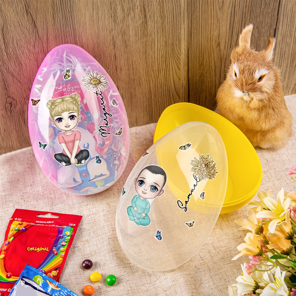 Dieses personalisierte Osterei eignet sich hervorragend als Geschenk. Es kann mit einer Cartoonfigur, einer Geburtsblume und Namen individuell gestaltet werden. Füllen Sie es mit Süßigkeiten oder kleinen Aufmerksamkeiten, um eine freudige Überraschung für Kinder zu schaffen und schönes Ostern zu gestalten. Das Osterei ist perfekt auf das Osterthema abgestimmt und verleiht der festlichen Atmosphäre des Osterfests einen besonderen Touch.