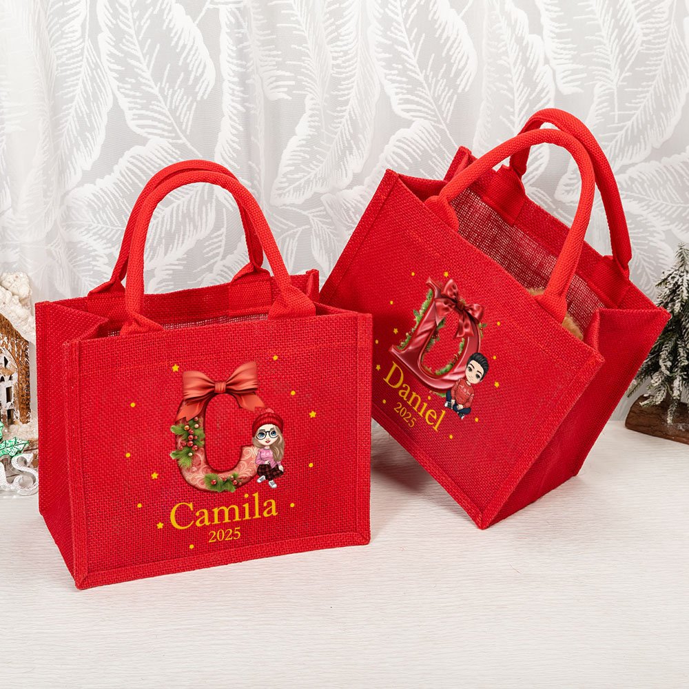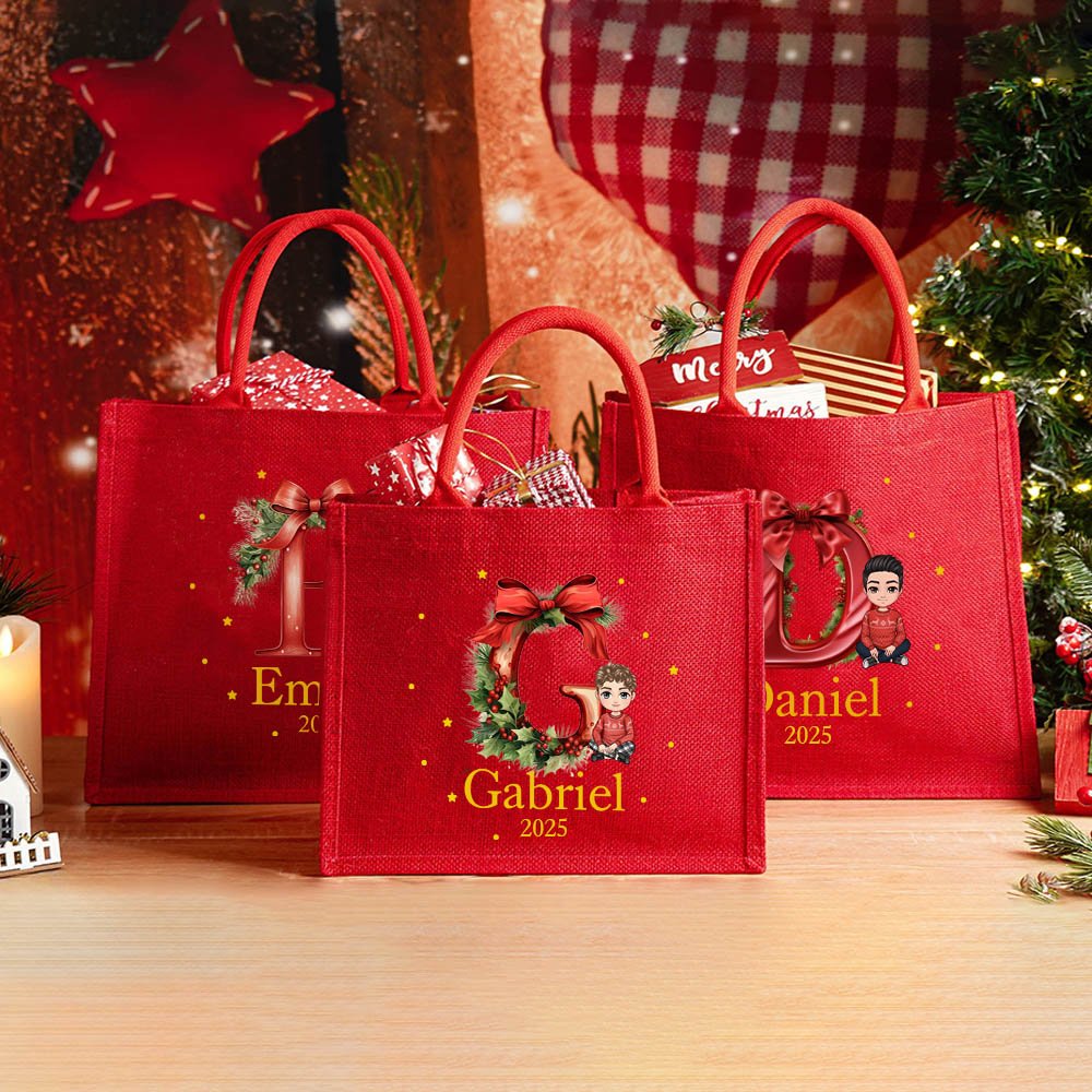 Diese rote Handtasche zeigt eine charmante Cartoon-Figur sowie verspielte Initialen mit weihnachtlichem Design, das die Initialen mit Cartoon-Elementen verbindet und so für eine besonders festliche Atmosphäre sorgt. Die Handtasche ist mit einem persönlichen Namen bedruckt, was sie noch unverwechselbarer macht. Rot ist die perfekte Farbe, um die Weihnachtsstimmung zu unterstreichen; diese Tasche verleiht jedem Fest Glanz.