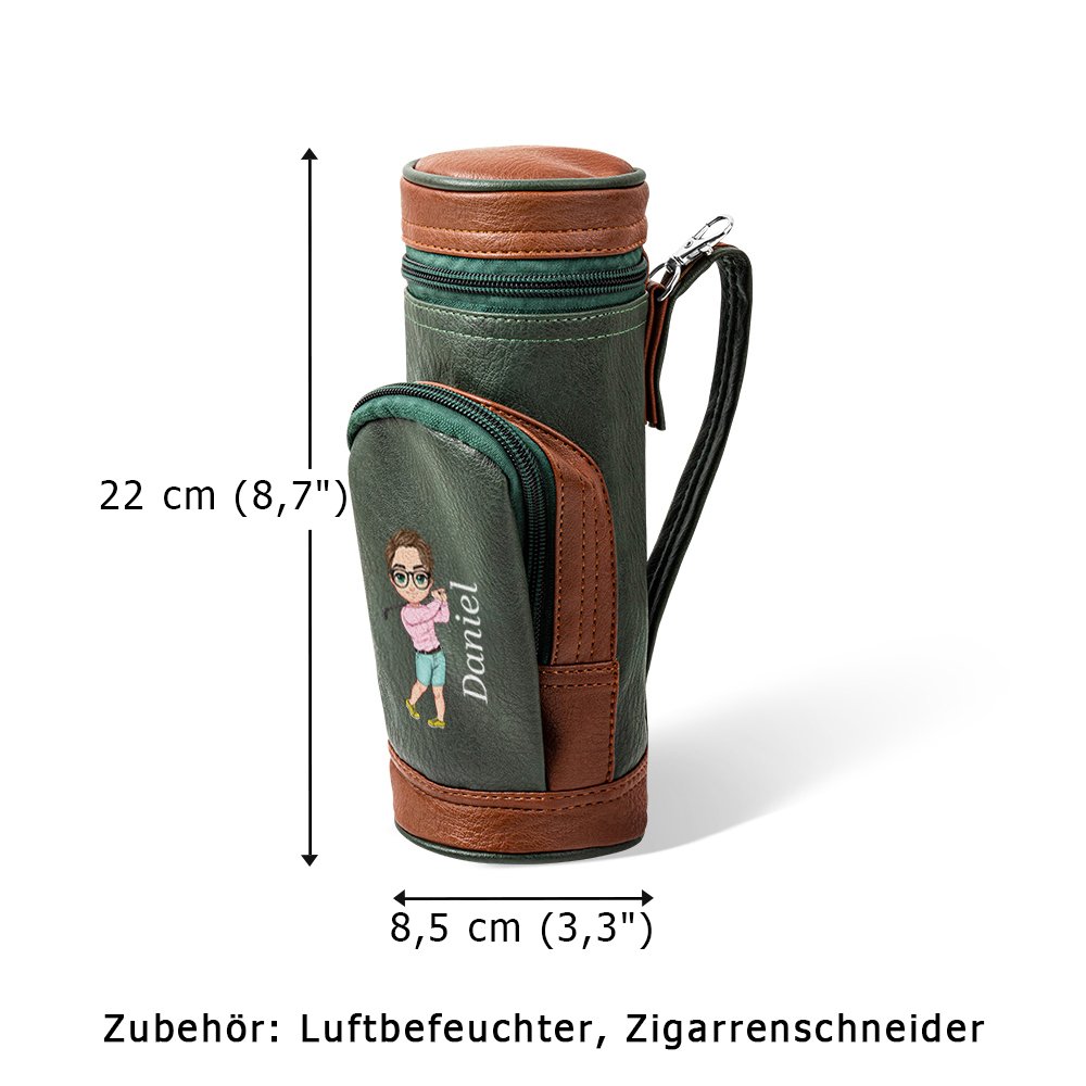 Jede Wertsachentasche ist einzigartig gestaltet und zeigt eine charmante Cartoon-Golffigur, die mit dem Namen des Empfängers personalisiert ist und so eine besondere Note erhält. Das skurrile Design verleiht jedem Golfausflug ein lustiges Element und unterstreicht gleichzeitig die Individualität des Golfers.