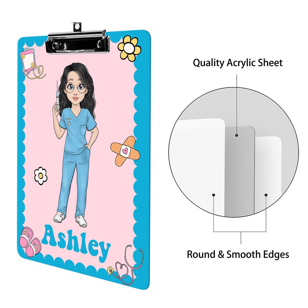 Dieses Klemmbrett aus Acryl zeigt Cartoon-Figuren, die medizinisches Fachpersonal darstellen, als Hauptdesign-Element. Es enthält verschiedene medizinische Komponenten wie Spritzen, Stethoskope, EKG-Linien, Pflaster und medizinische Ordner, die die Professionalität des medizinischen Bereichs widerspiegeln und gleichzeitig einen charmanten visuellen Anreiz bieten. Sie können die Cartoon-Figur nach Ihren persönlichen Vorlieben anpassen und so einen Hauch von Spaß und Vitalität in Ihr medizinisches Umfeld bringen.