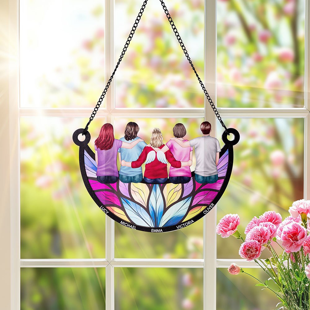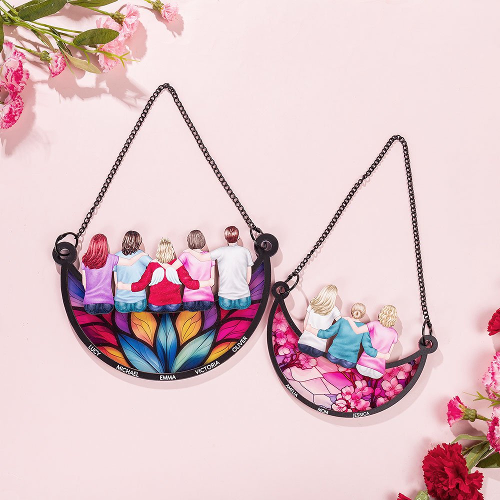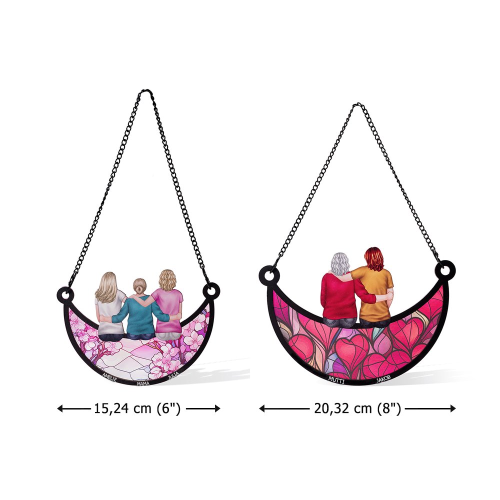 Dieser personalisierte, mondförmige Sonnenfänger ist das perfekte Geschenk zum Muttertag, Geburtstag oder einfach, um die besondere Verbindung zwischen Mutter und ihren Kindern zu feiern. Ob für Ihre Mutter, Großmutter oder eine besondere Mutterfigur, dieses dekorative Stück auf wunderschöne Weise Wärme und Liebe, die in einer Familie geteilt wird.