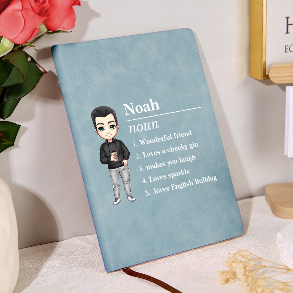 Dieses Notizbuch ist für modebewusste Menschen gedacht. Die auf den Einband gedruckten Cartoon-Figuren formen das Bild von gutaussehenden Männern und schönen Frauen und zeigen ihr Temperament. Es sind verschiedene Einbandfarben erhältlich, von klassischem Schwarz bis zu zartem Blau. Jede Farbe kann perfekt zu Ihrem Stil passen. Passen Sie den Namen und 1-5 Sätze des persönlichen Textes an, um ein einzigartiges Accessoire zu schaffen.